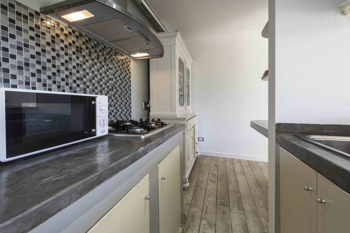 Wohnküche: gut ausgestattete Küche, Esstisch (Personen: 8), Spülmaschine, Kühlschrank, Tiefkühler, Mikrowelle, Herd, Ofen, Italienische Kaffeemaschine, zwei Sofas, Doppel-Schlafsofa, WiFi Internet, Klimaanlage, TV, Ausgang auf den Garten.