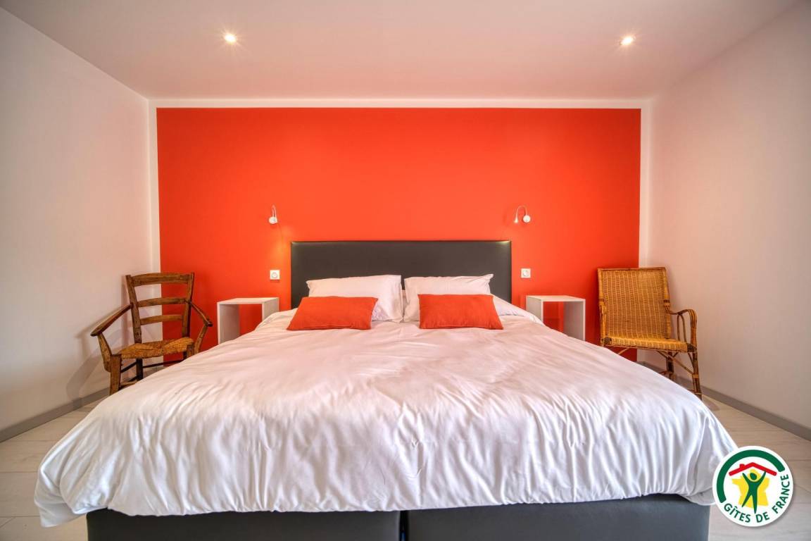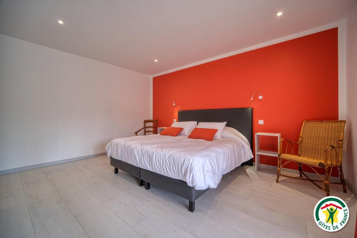 Im Laufe der Jahre entwickelt sich unser Haus weiter und bekommt ein zweites Leben. Die Aubergerie-Gîtes sind eine zukünftige Gruppe von 4 Gîtes. Nachdem Sie über eine optimale Aufteilung nachgedacht und mit 100 % natürlichen Materialien gearbeitet haben, heißen Sie die Gîtes Suzanne und Battista mit ihren sehr gut durchdachten 50 m² herzlich willkommen! Battista befindet sich im 1. Stock (bequeme Treppe mit Rampe) und ist wie folgt aufgeteilt: Der Eingang öffnet sich zum Wohnzimmer und öffnet sich auf Ihre 28 m² große Südterrasse. Das 19m² große Schlafzimmer verfügt über 2 Einzelbetten 90x200, die zu einem Bett zusammengestellt werden können, Kingsize 180x200cm, ein Badezimmer (große Dusche) und Zugang zur Terrasse (Erkerfenster). Die Toilette ist unabhängig. Wenn die Eingangshalle mit unserer 2. Gîte Suzanne gemeinsam ist, sind die Eingänge unabhängig und die Terrassen sind unterschiedlich ausgerichtet. Dies erleichtert Ihnen auch die Verkehrsanbindung, wenn