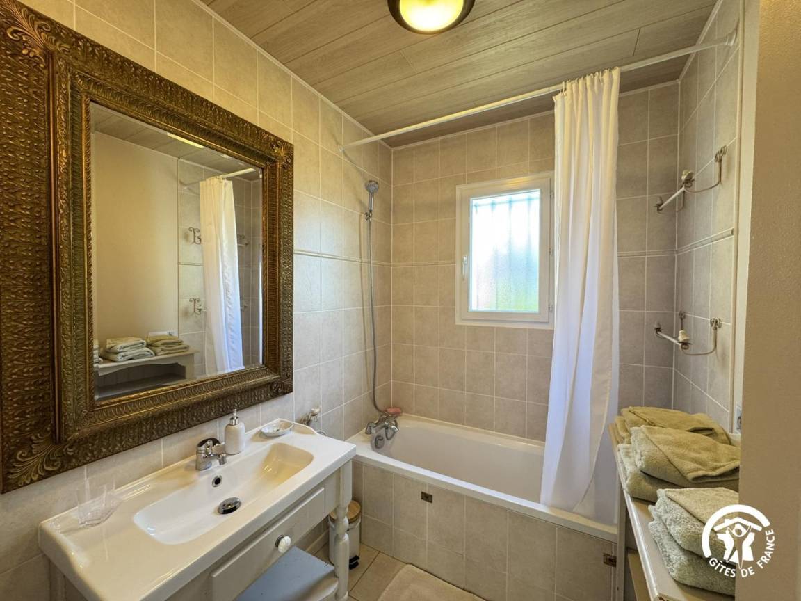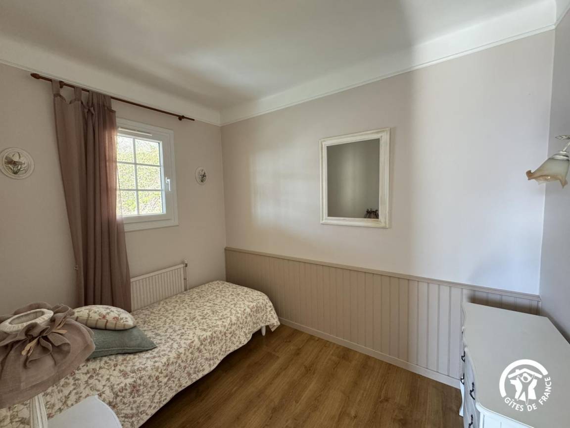 „Tres beau cadre. Piscine de grande qualitee. Gite un peu trop eloigne. Lit une personne de qualite moyenne. Le reste parfait“