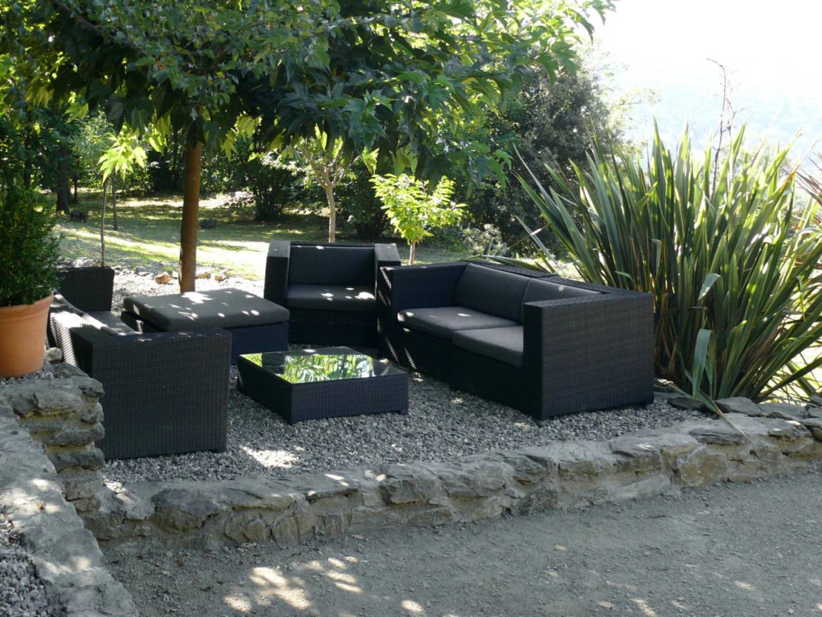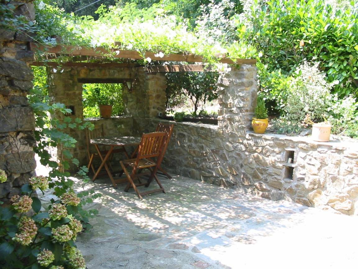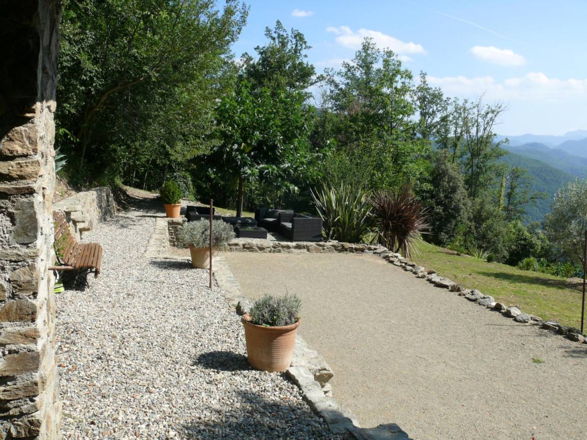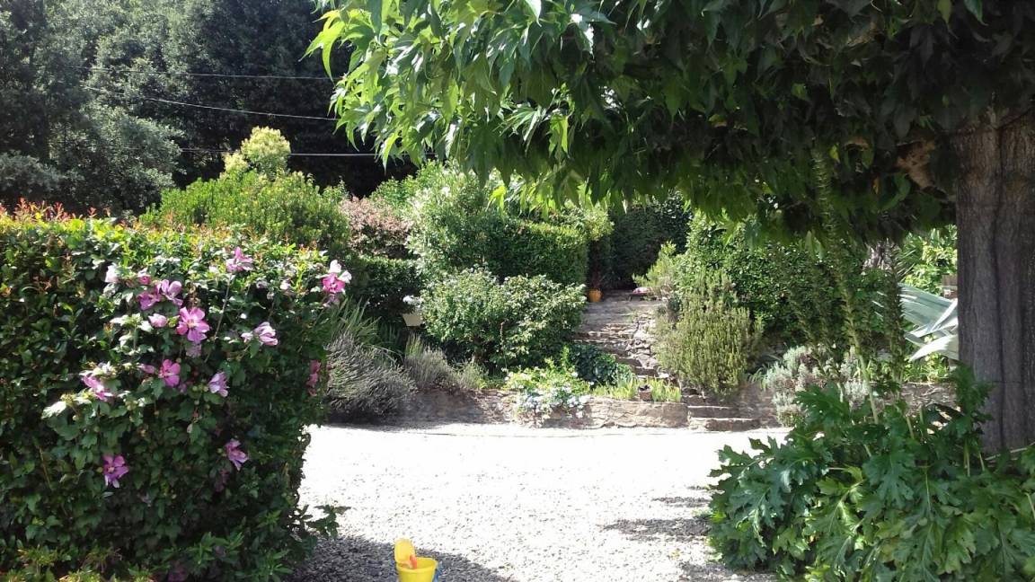 Im Obergeschoss führt eine 12 Meter lange Galerie zu vier Schlafzimmern (drei Doppelzimmer mit Doppelbetten (140 cm) und ein kleines Schlafzimmer mit Ausziehbett), zwei Badezimmern und einem WC. Die drei Doppelzimmer im Erdgeschoss auf der Rückseite des Hauses verfügen jeweils über eine große, private, blumenreiche Terrasse mit Gartenmöbeln und Sonnenliegen. Das fast 2 Hektar große Anwesen Al Pare bietet an verschiedenen Stellen private Terrassen, Gartenmöbel, Bänke und Hängematten. Ein Grill, eine Grillplatte, ein privater Swimmingpool, eine Tischtennisplatte, ein Badminton-/Pétanque-Platz, eine voll ausgestattete Sommerküche bzw. Bodega und ein Kinderspielhaus bieten vielfältige Möglichkeiten für Freizeitaktivitäten, Sport und Spaß mit Familie und Freunden. Für sportliche Aktivitäten gibt es zahlreiche Wanderwege, vom „Schloss" Montferrer bis zum Gipfel des Canigou (2784 m). Das Anwesen Falgos mit Spa, Golfplatz, Restaura