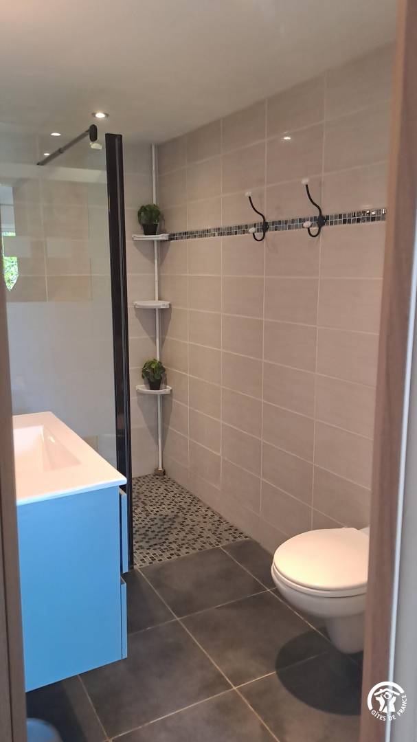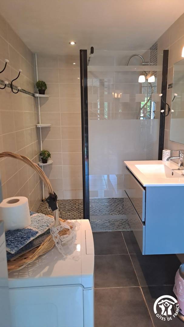 „Gîte très bien équipé et très mignon. Seul bémol on n'a pas eu assez d'eau chaude pour la 4ème douche.sinon je recommande cet endroit“