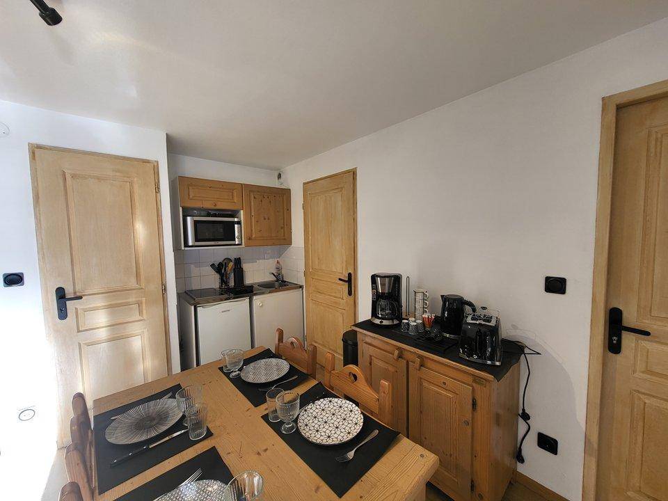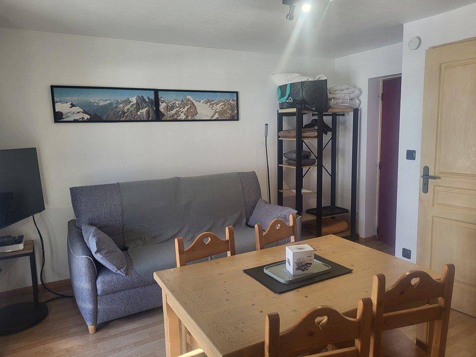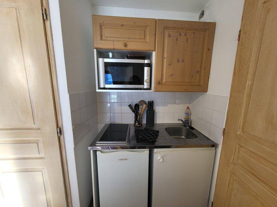 Fläche von ungefähr 26 m². 1te Etage. Orientierung : Süd. Wohnzimmer mit Klappschlafcouch (140). kleines zimmer mit 2 Stockbetten. Küche mit Wasserkocher, Kaffeemaschine (à filtres), Mikrowellengrill, Toaster, Mikrowellenherd, , 2 Glaskeramikkochfelder, Kühlschrank. Badezimmer mit Dusche, WC. Terrasse mit Gartentisch und -stühle. Staubsauger. Die oberen Betten sind nicht für Kinder unter 6 Jahren geeignet.
