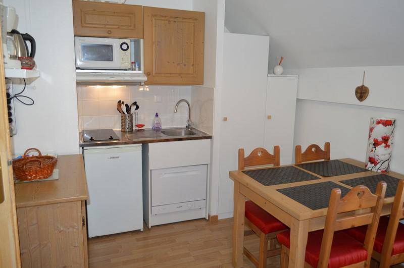 Fläche von ungefähr 21 m². 2te Etage. Orientierung : Nord. Blick berg. Wohnzimmer mit Staubsauger, Klappschlafcouch (140). mit , , Raclettegerät, Wasserkocher, Kaffeemaschine (à filtres et nespresso), Toaster, Dunstabzugshaube, Geschirrspülmaschine, Mikrowellenherd, 2 Glaskeramikkochfelder, Kühlschrank. offener Schlafbereich mit 2 Stockbetten (80). Badezimmer mit Dusche, Waschbecken, Haartrockner, WC. Die oberen Betten sind nicht für Kinder unter 6 Jahren geeignet.