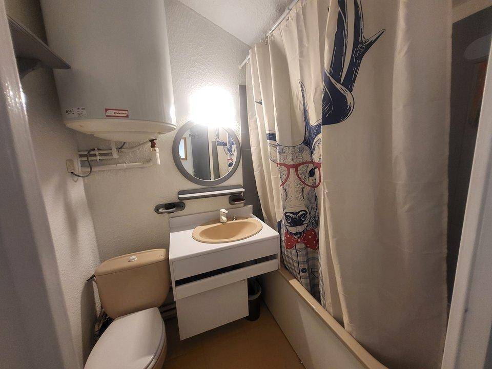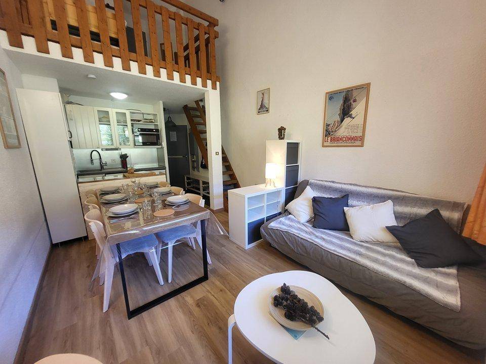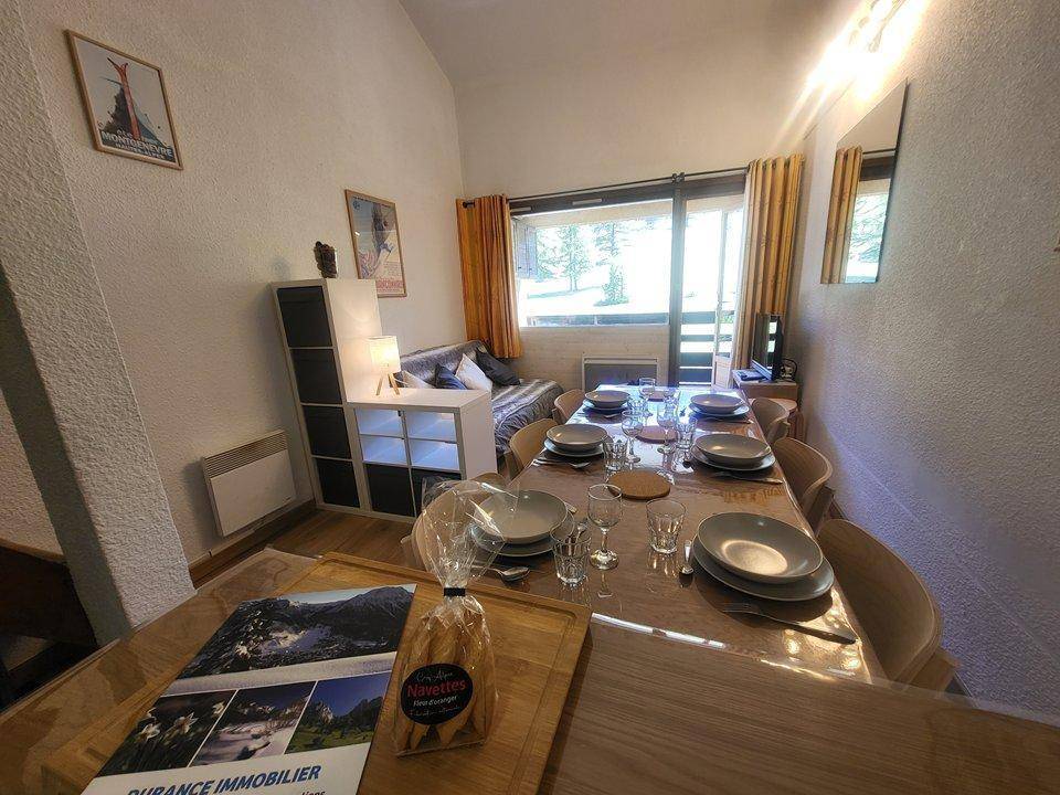 Fläche von ungefähr 50 m². 2te Etage. Orientierung : Süd. Blick skipisten. Niveau 0 : Wohnzimmer mit Klappschlafcouch (140). Schlafzimmer mit Doppelbett (140). Küche mit Geschirrspülmaschine, Mikrowellenherd, kleiner Backofen, 2 Glaskeramikkochfelder, Kühlschrank. separates WC mit Waschbecken. Balkon. Niveau 1 : Zwischengeschoss mit 2 Ausziehbetten. Mansardenzimmer mit 2 Stockbetten. Badezimmer mit Badewanne, WC. Die oberen Betten sind nicht für Kinder unter 6 Jahren geeignet.