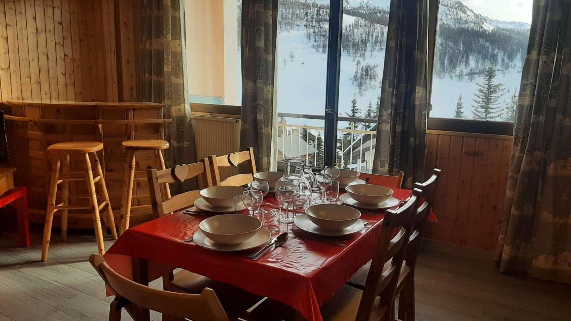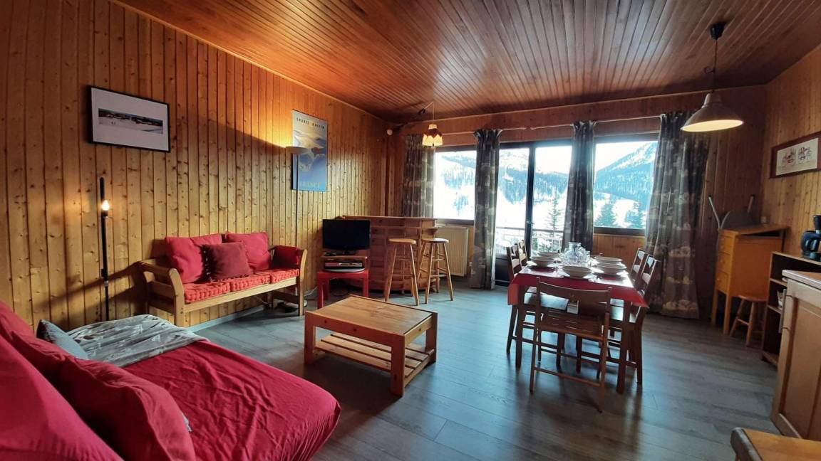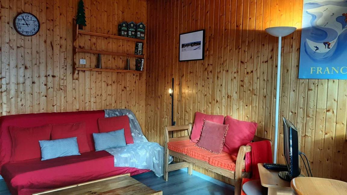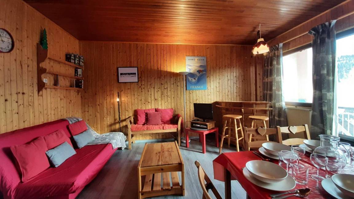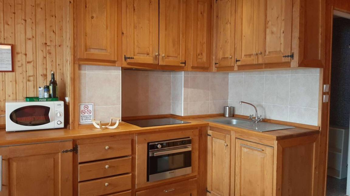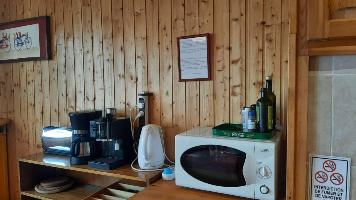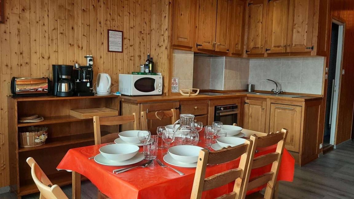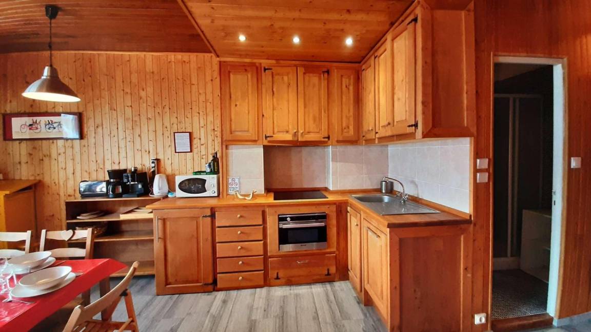 Fläche von ungefähr 50 m². 1te Etage. Orientierung : Süd. Blick berg. Wohnzimmer mit Klappschlafcouch (130). Schlafzimmer mit Doppelbett (140). Schlafzimmer mit 2 Stockbetten. Kochnische mit Wasserkocher, Kaffeemaschine, kleiner Backofen mit Mikrowellenfunktion, Toaster, Geschirrspülmaschine, 2 elektronische Herdplatten, Kühlschrank. Badezimmer mit Dusche, Waschmaschine. separates WC. Die oberen Betten sind nicht für Kinder unter 6 Jahren geeignet.