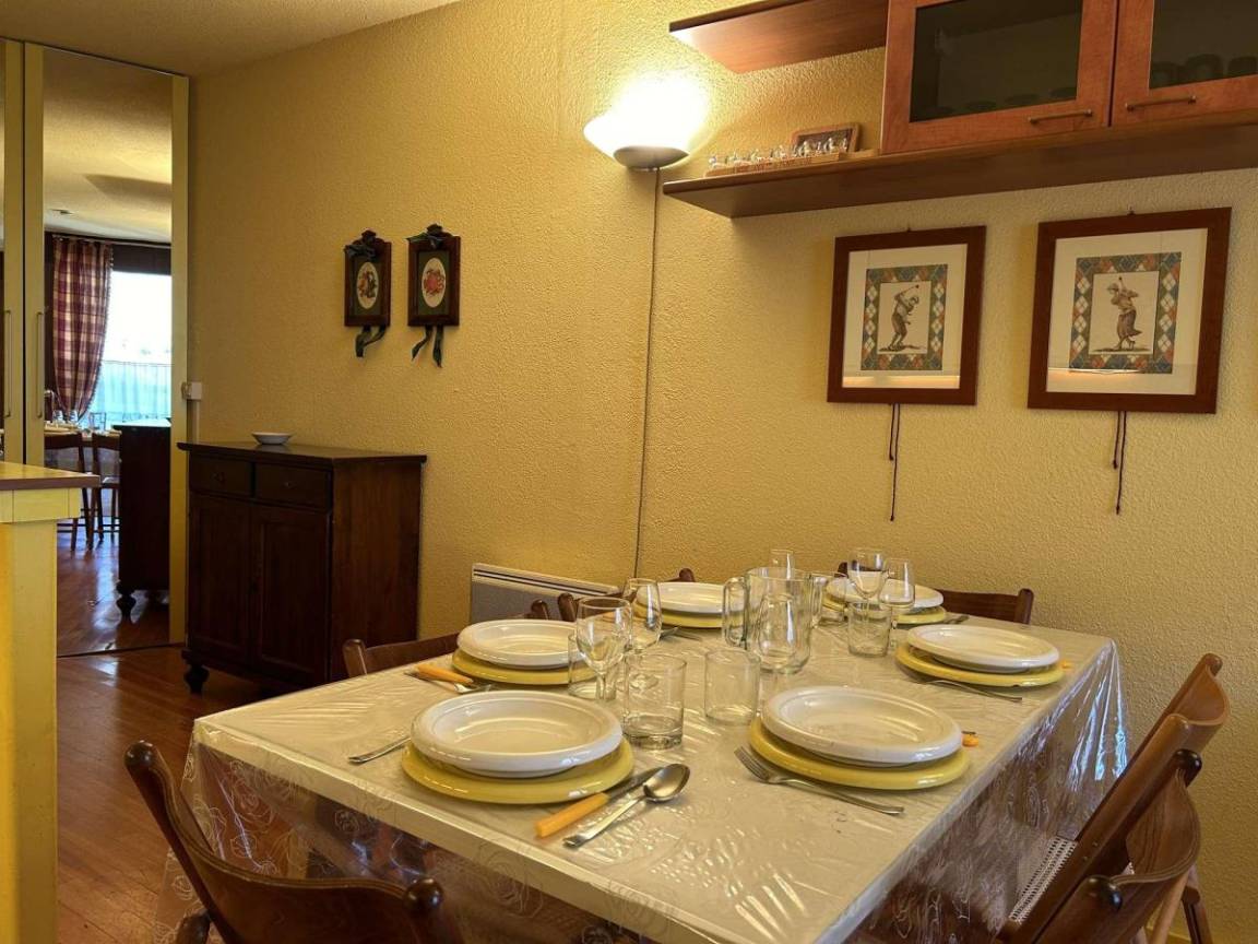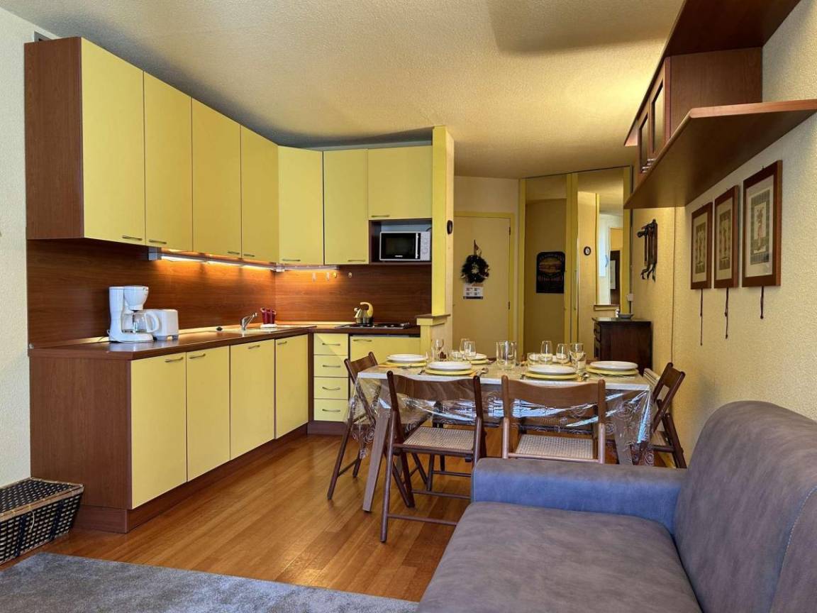 Fläche von ungefähr 50 m². 1te Etage. Orientierung : Ost. Blick skipisten. Wohnzimmer mit Klappschlafcouch (160). Schlafzimmer mit Doppelbett (160). Schlafbereich mit 2 Stockbetten (80). Kochnische mit Staubsauger, Wasserkocher, Kaffeemaschine (à filtres), , kleiner Backofen mit Mikrowellenfunktion, Toaster, Geschirrspülmaschine, elektronische Herdplatten, Kühlschrank. Badezimmer mit Dusche. WC. Die oberen Betten sind nicht für Kinder unter 6 Jahren geeignet.