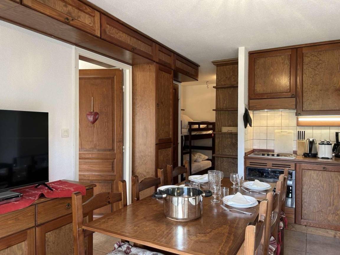 Fläche von ungefähr 32 m². Erdgeschoss. Orientierung : Süd. Wohnzimmer mit TV. offener Schlafbereich mit 2 Stockbetten. Schlafzimmer mit Doppelbett (160). Küche mit Kaffeemaschine (électrique), kleiner Backofen mit Mikrowellenfunktion, Geschirrspülmaschine, 2 elektronische Herdplatten, Kühl-Gefrier-Kombination. Waschräume mit Waschmaschine, WC. Garten. Die oberen Betten sind nicht für Kinder unter 6 Jahren geeignet.