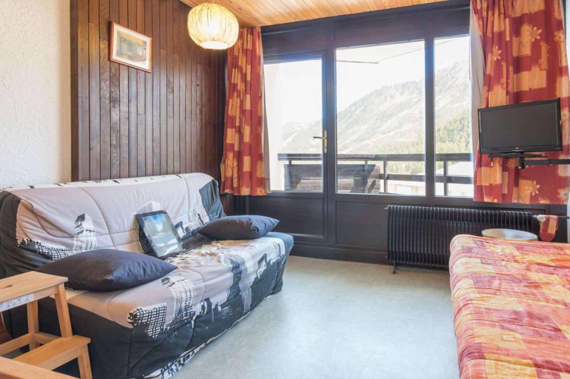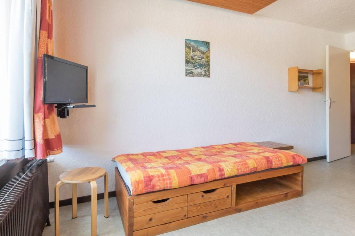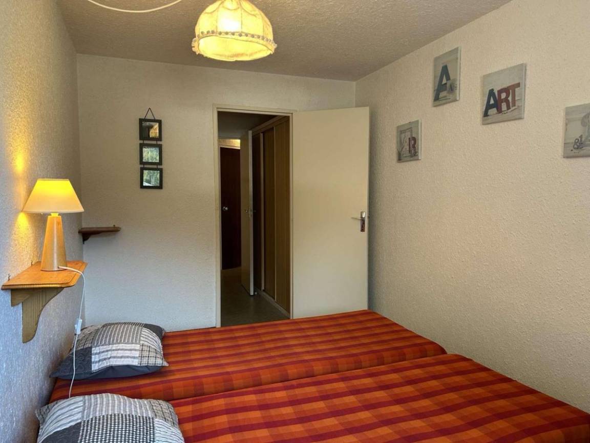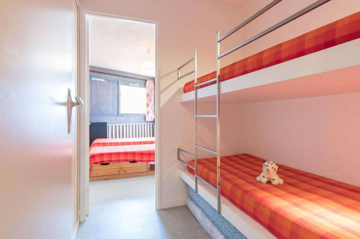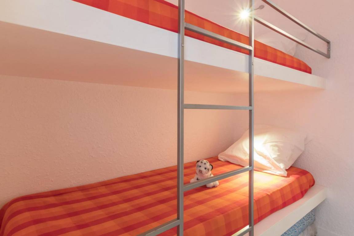 Fläche von ungefähr 42 m². 5te Etage. Orientierung : Ost. Blick dorf. Wohnzimmer mit Klappschlafcouch (140). Schlafzimmer mit 2 Einzelbetten. offener Schlafbereich mit 2 Stockbetten. Küche mit Kaffeemaschine, kleiner Backofen mit Mikrowellenfunktion, 2 elektronische Herdplatten, Kühlschrank. Badezimmer mit Badewanne. separates WC. Balkon. Die oberen Betten sind nicht für Kinder unter 6 Jahren geeignet.