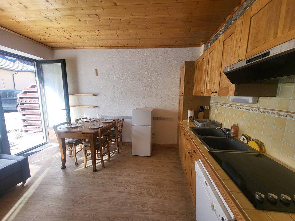 Fläche von ungefähr 29 m². Erdgeschoss. Orientierung : Süd. Blick parkmöglichkeiten. Wohnzimmer mit Klappschlafcouch (140), TV. offener Schlafbereich mit 2 Stockbetten (140*190). Küche mit Wasserkocher, Kaffeemaschine (électrique), Toaster, Geschirrspülmaschine, Mikrowellenherd, 2 elektronische Herdplatten, Kühl-Gefrier-Kombination. Waschräume mit WC. Terrasse. Die oberen Betten sind nicht für Kinder unter 6 Jahren geeignet.