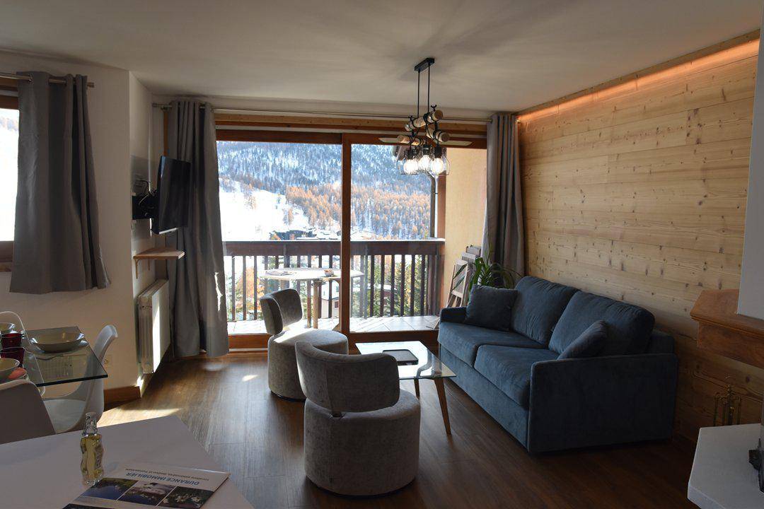 Fläche von ungefähr 73 m². 3te Etage. Orientierung : Süd. Niveau 0 : Wohnzimmer mit Klappschlafcouch (140*190), Kamin. Schlafzimmer mit 2 Stockbetten. Kochnische mit 2 Kaffeemaschinen (filtre et Tassimo), Backofen, Geschirrspülmaschine, Mikrowellenherd, 2 Induktionsherdplatten, Kochplatte, Kühl-Gefrier-Kombination. Waschräume mit Dusche, Waschmaschine. Balkon. Niveau 1 : Schlafzimmer mit Doppelbett (180). Schlafzimmer mit Doppelbett (160). Badezimmer mit Badewanne, WC. Waschräume mit Waschraum, WC. Die oberen Betten sind nicht für Kinder unter 6 Jahren geeignet.