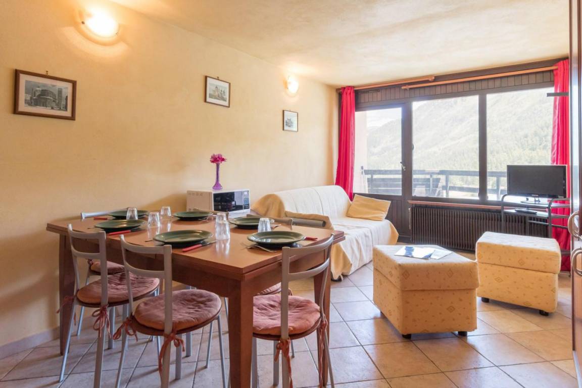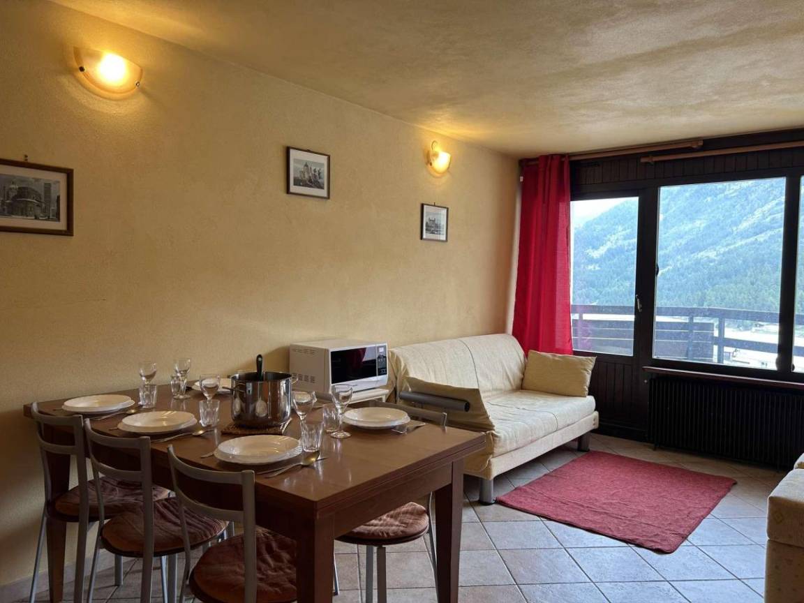 Fläche von ungefähr 42 m². 6te Etage. Orientierung : Süd-Ost. Blick berg. Wohnzimmer mit Klappschlafcouch (160*200). Schlafzimmer mit Doppelbett (160). offener Schlafbereich mit 2 Stockbetten (90). Küche mit Kaffeemaschine (à filtre), kleiner Backofen mit Mikrowellenfunktion, Geschirrspülmaschine, 2 Glaskeramikkochfelder, Kühl-Gefrier-Kombination. separates WC. Waschräume. Balkon. Die oberen Betten sind nicht für Kinder unter 6 Jahren geeignet.