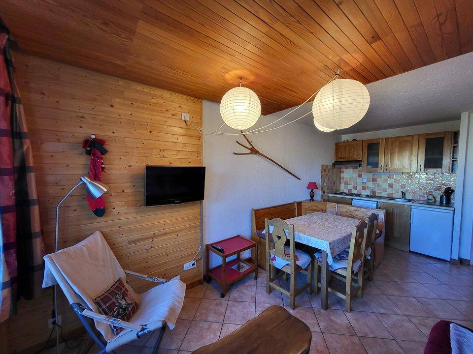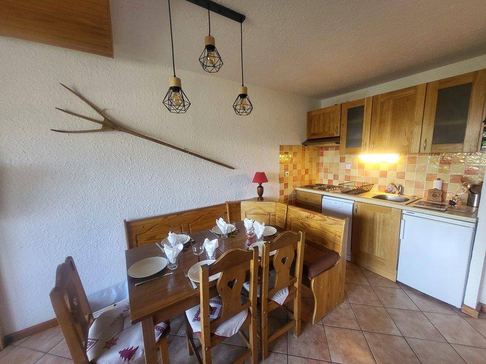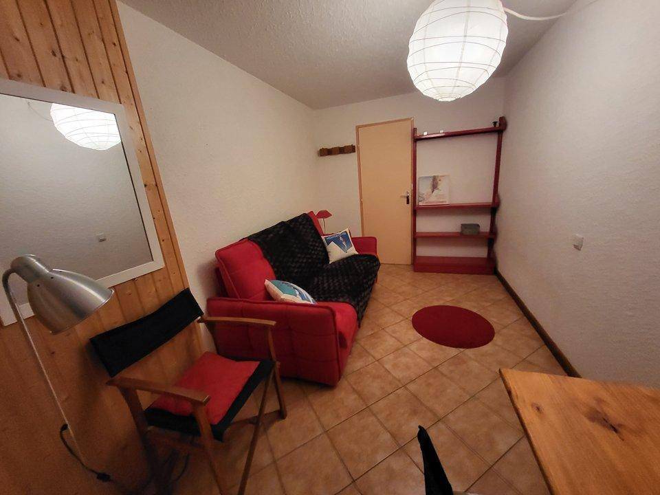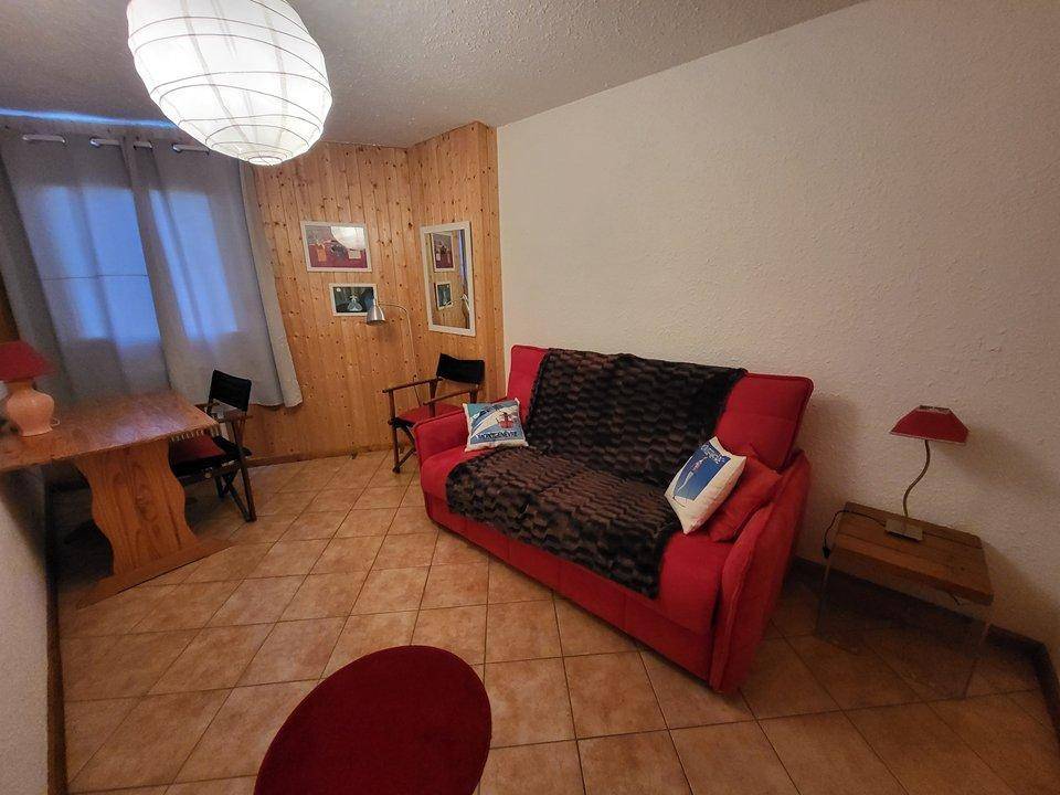 Fläche von ungefähr 42 m². 5te Etage. Orientierung : West. Wohnzimmer mit Klappschlafcouch (160). offener Schlafbereich mit 2 Stockbetten. Schlafzimmer mit Doppelbett (140). Kochnische mit Fonduegerät, Raclettegerät, Wasserkocher, Kaffeemaschine, Toaster, Dunstabzugshaube, Geschirrspülmaschine, Mikrowellenherd, kleiner Backofen, 4 elektronische Herdplatten, Kühlschrank. Badezimmer mit Waschmaschine. WC. Balkon mit 2 Liegestühle. Die oberen Betten sind nicht für Kinder unter 6 Jahren geeignet.