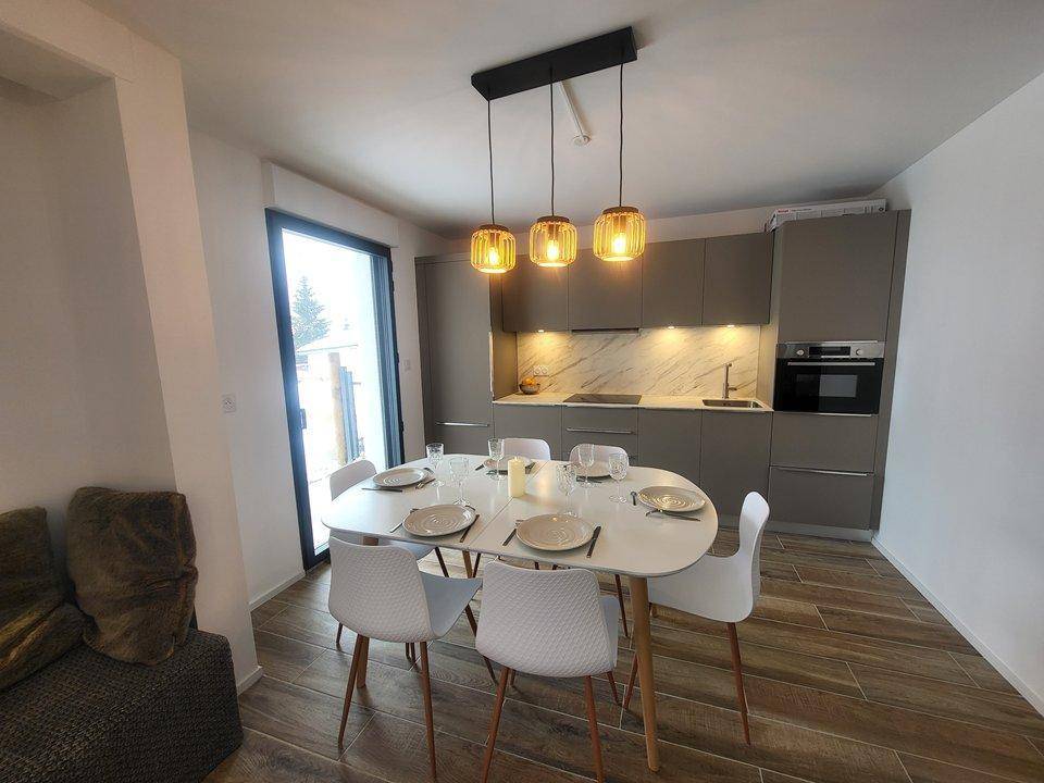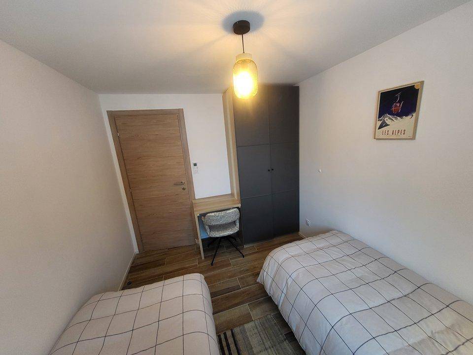 Rund um das Resort sind zahlreiche Wanderwege möglich. Fläche von ungefähr 59 m². Orientierung : Süd. Wohnzimmer mit BZ-Sofas. Schlafzimmer mit Doppelbett (160). Schlafzimmer mit 2 Einzelbetten. Küche mit Wasserkocher, Kaffeemaschine (Nespresso), Multifunktions-Backofen, Toaster, Geschirrspülmaschine, 2 Induktionsherdplatten, Kühlschrank. Waschräume mit italienische Duschkabine, Handtuchtrockner. separates WC. Terrasse. Waschmaschine.