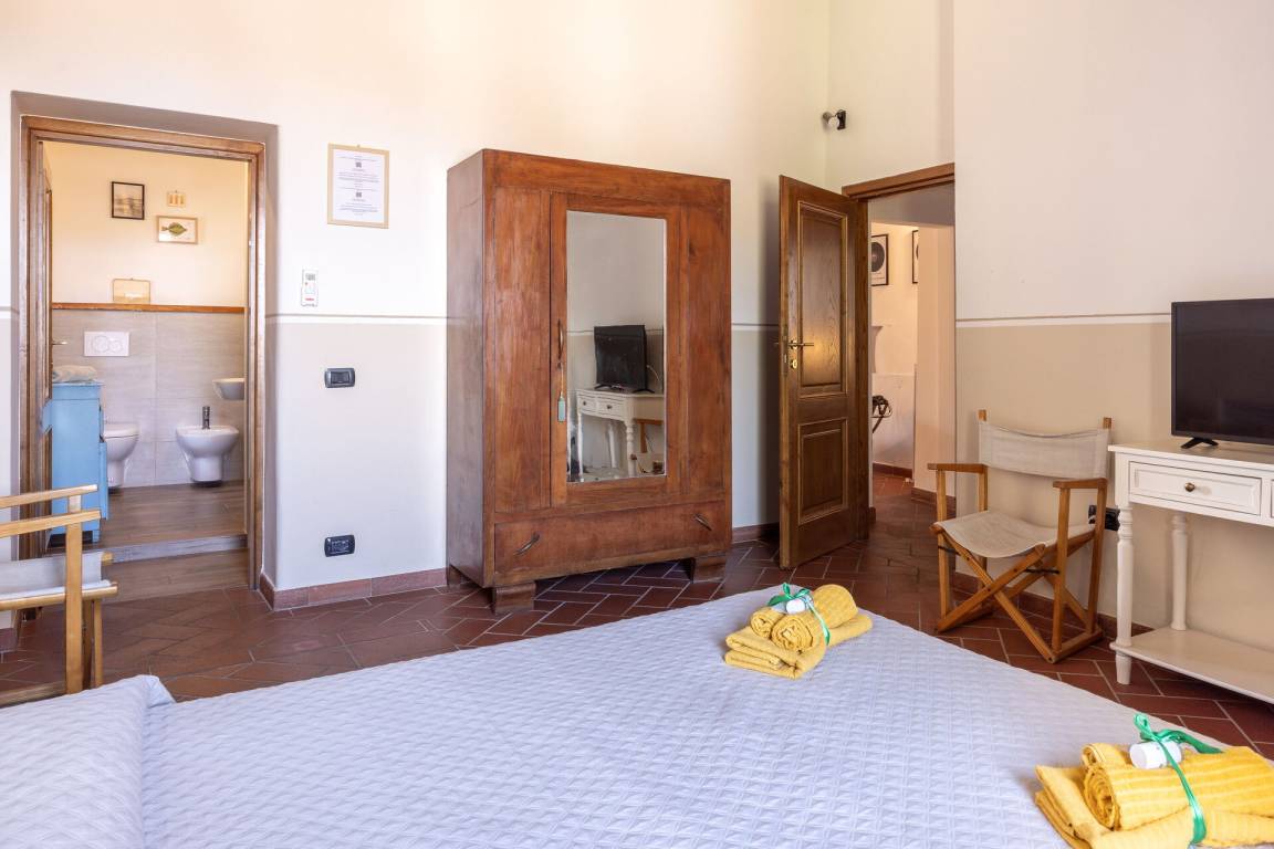 Schlafzimmer mit Bad 3: Doppelbett, WiFi Internet, Klimaanlage, TV, Kühlschrank, Waschbecken, WC, Bidet, Dusche, Fön.