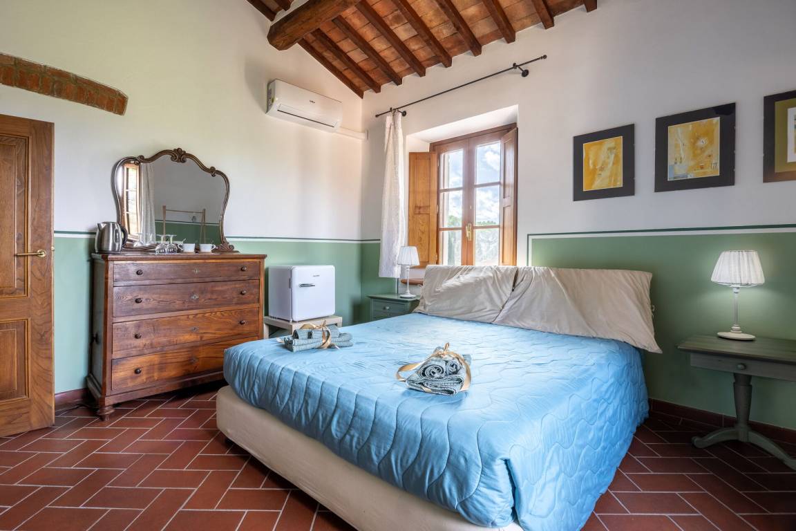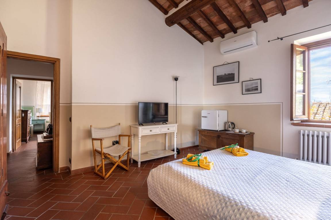 Schlafzimmer mit Bad 2: Doppelbett, WiFi Internet, Klimaanlage, TV, Kühlschrank, Waschbecken, WC, Bidet, Dusche, Fön.