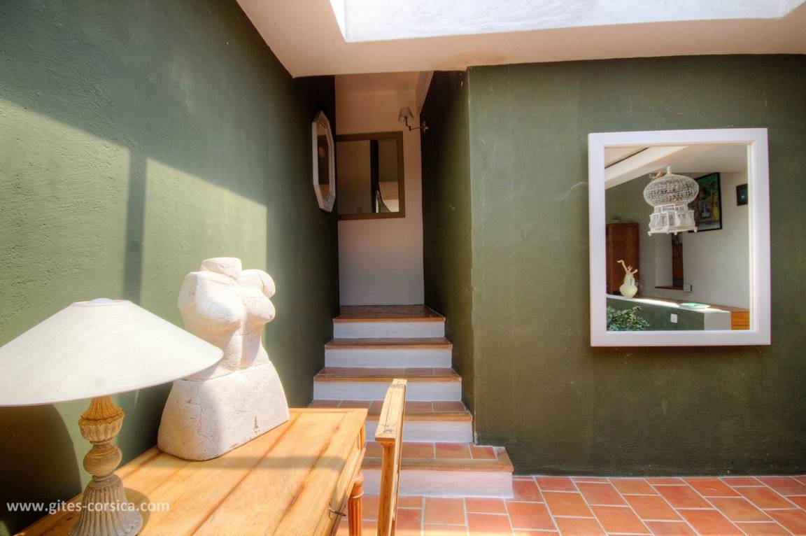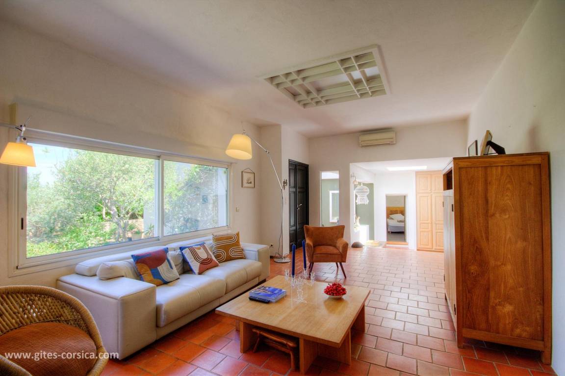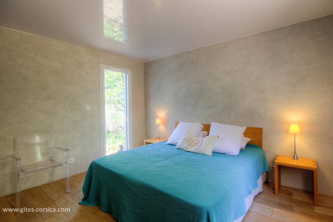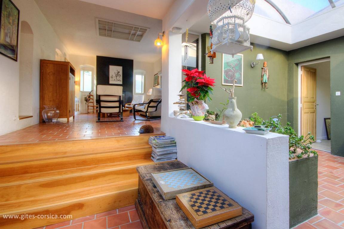 Auf einem 4.700 m² großen Grundstück befindet sich eine 150 m² große Ferienwohnung im 1. Stock eines Hauses, in dem sich im Erdgeschoss die Wohnung der Eigentümer befindet. Es umfasst: