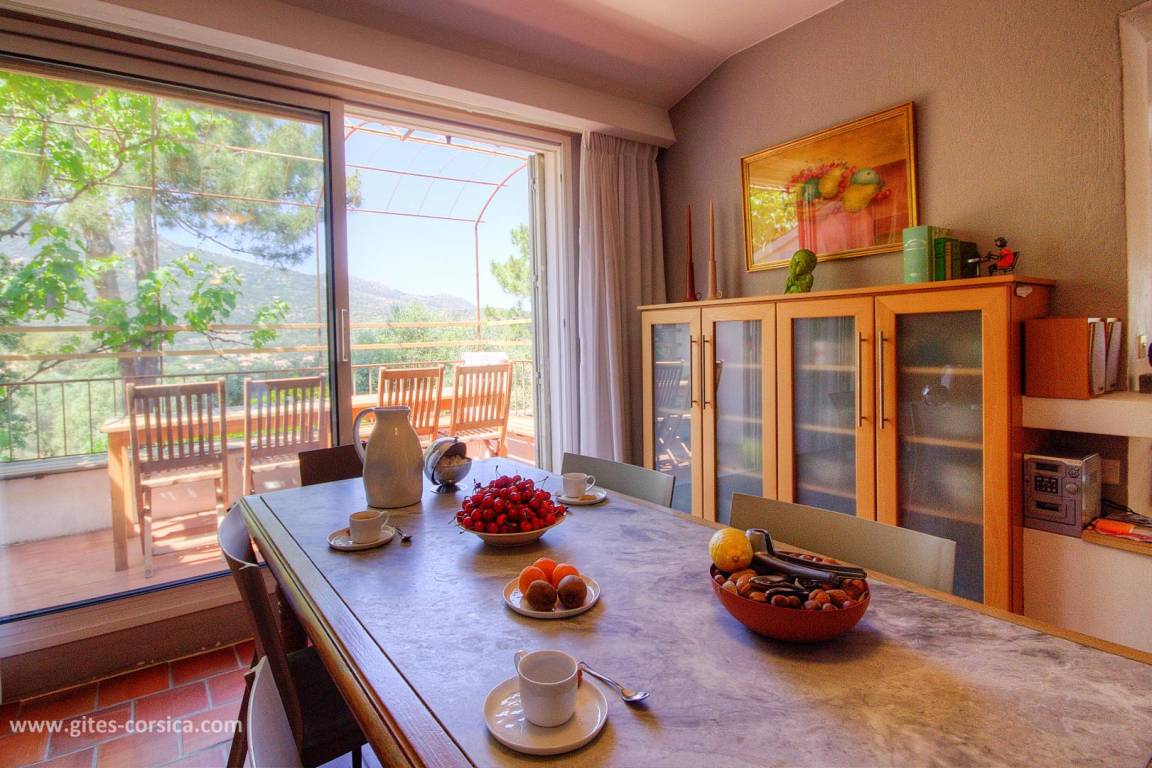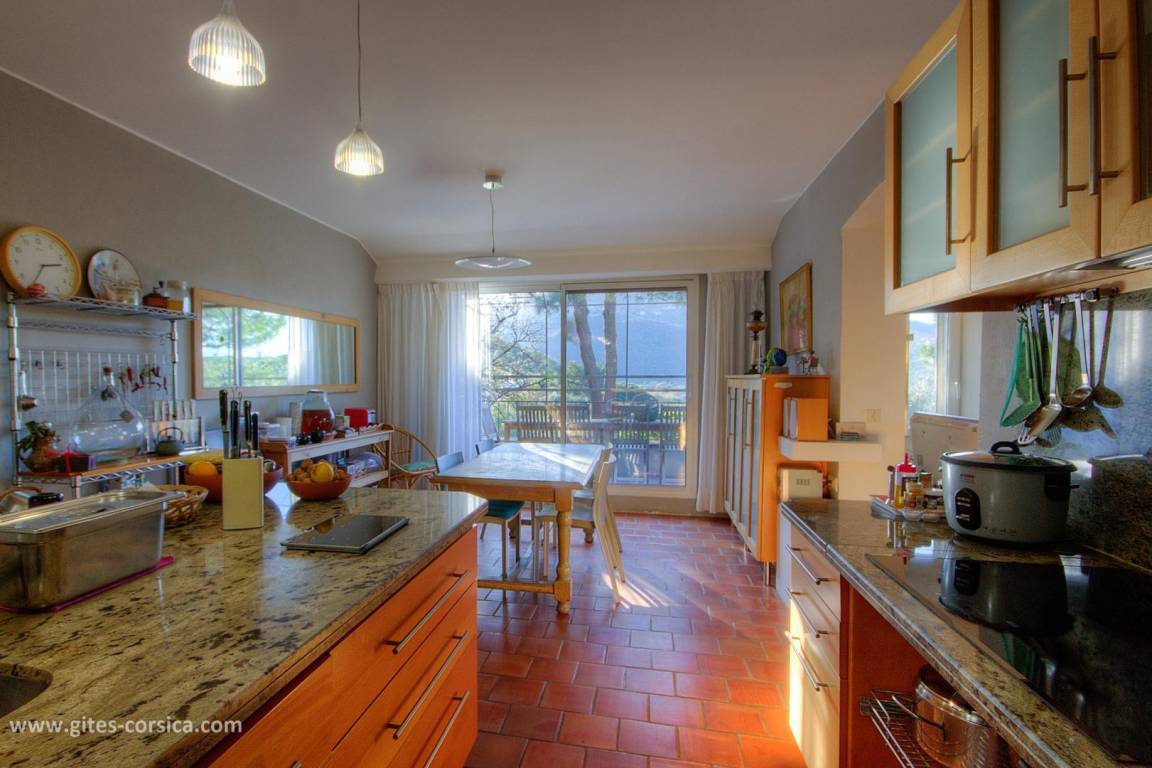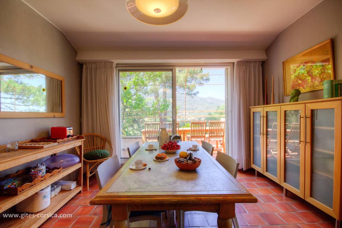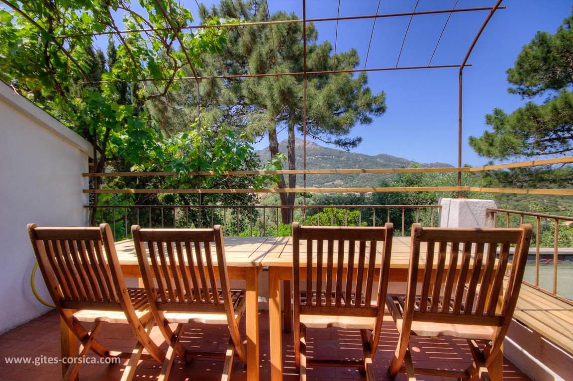 Auf einem 4.700 m² großen Grundstück befindet sich eine 150 m² große Ferienwohnung im 1. Stock eines Hauses, in dem sich im Erdgeschoss die Wohnung der Eigentümer befindet. Es umfasst: