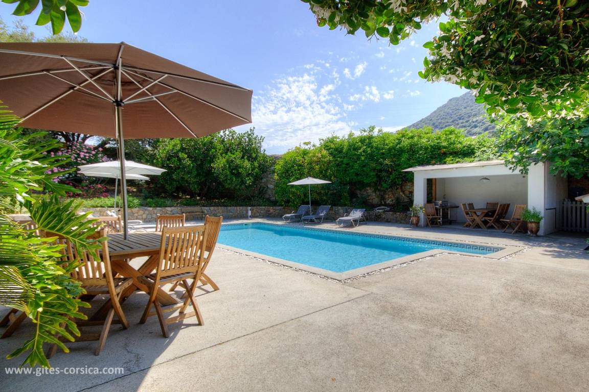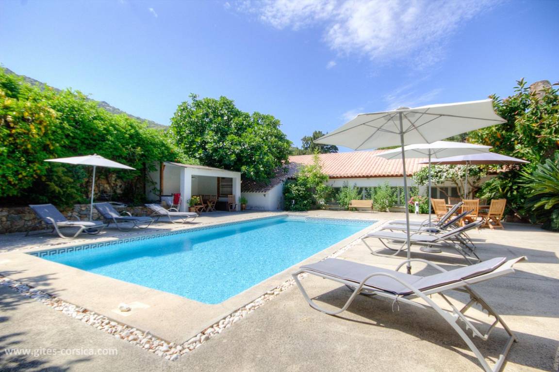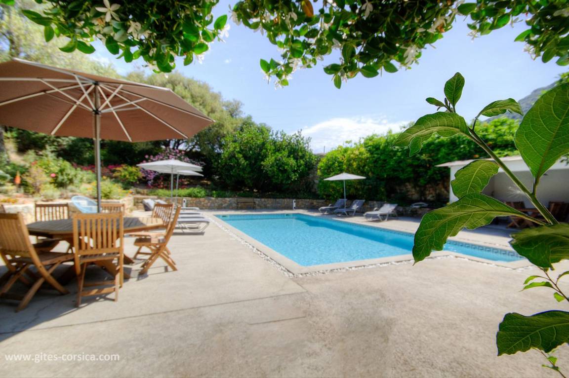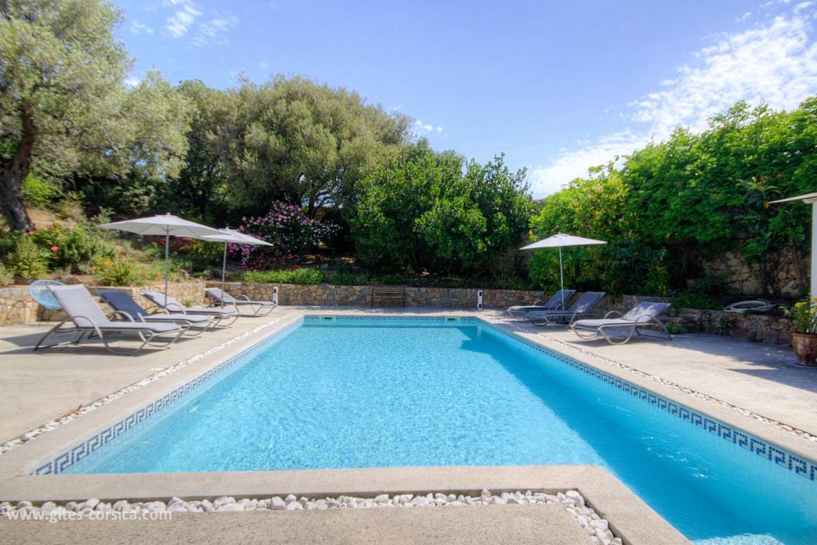 - Terrasse von 120 m² (mit einem 12 m² großen überdachten Bereich) mit einem privaten 10 x 5 Meter großen Swimmingpool, der von Anfang April bis Ende Oktober geöffnet und alarmgesichert ist. Der Swimmingpool steht ausschließlich den Gästen zur Verfügung.
