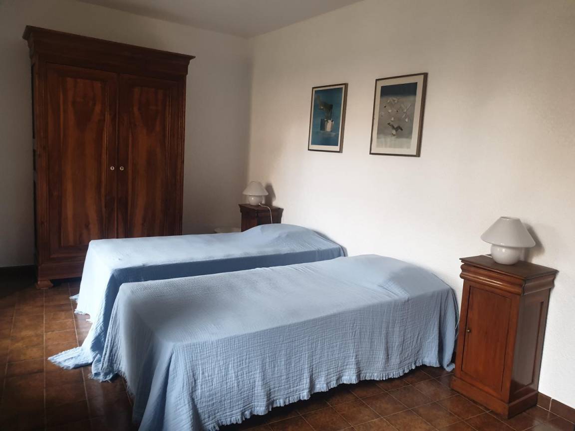 - 1 Schlafzimmer mit zwei Betten (90 x 200 cm, die zu einem Bett (180 x 200 cm) zusammengestellt werden können)