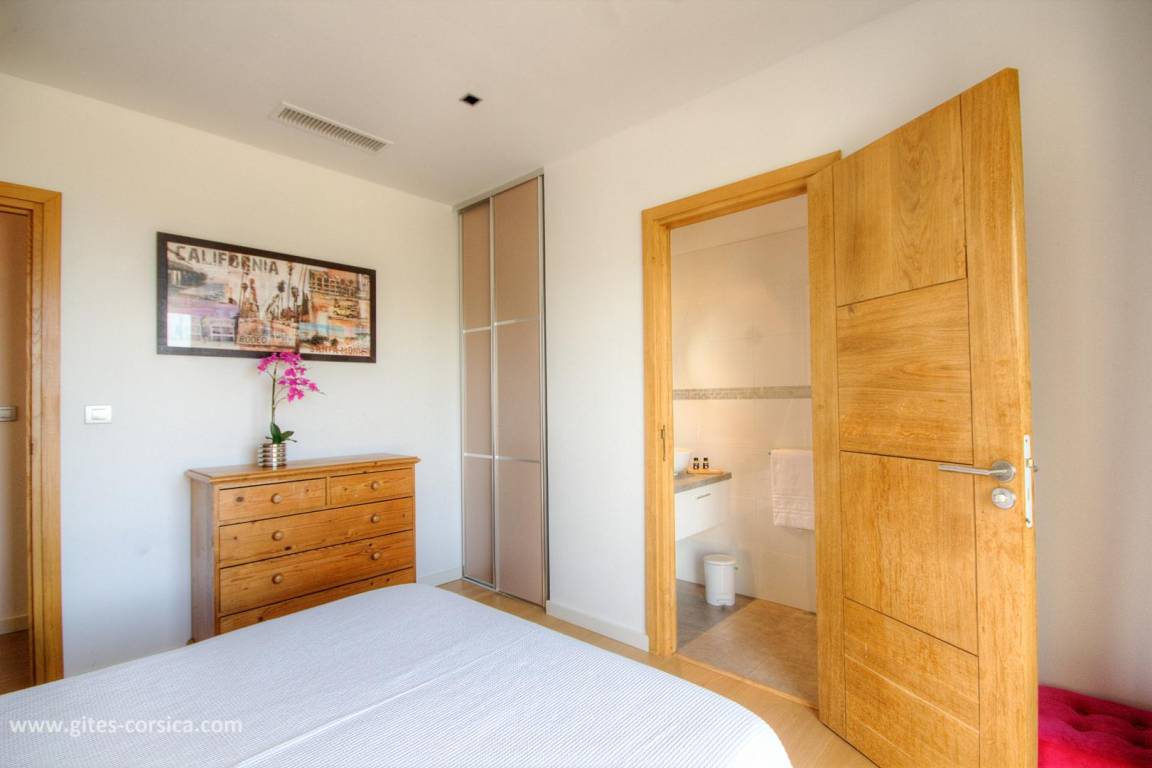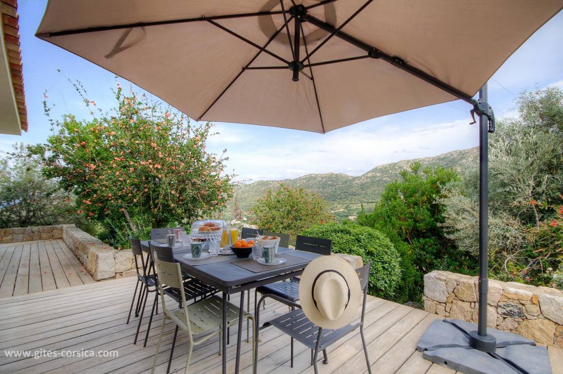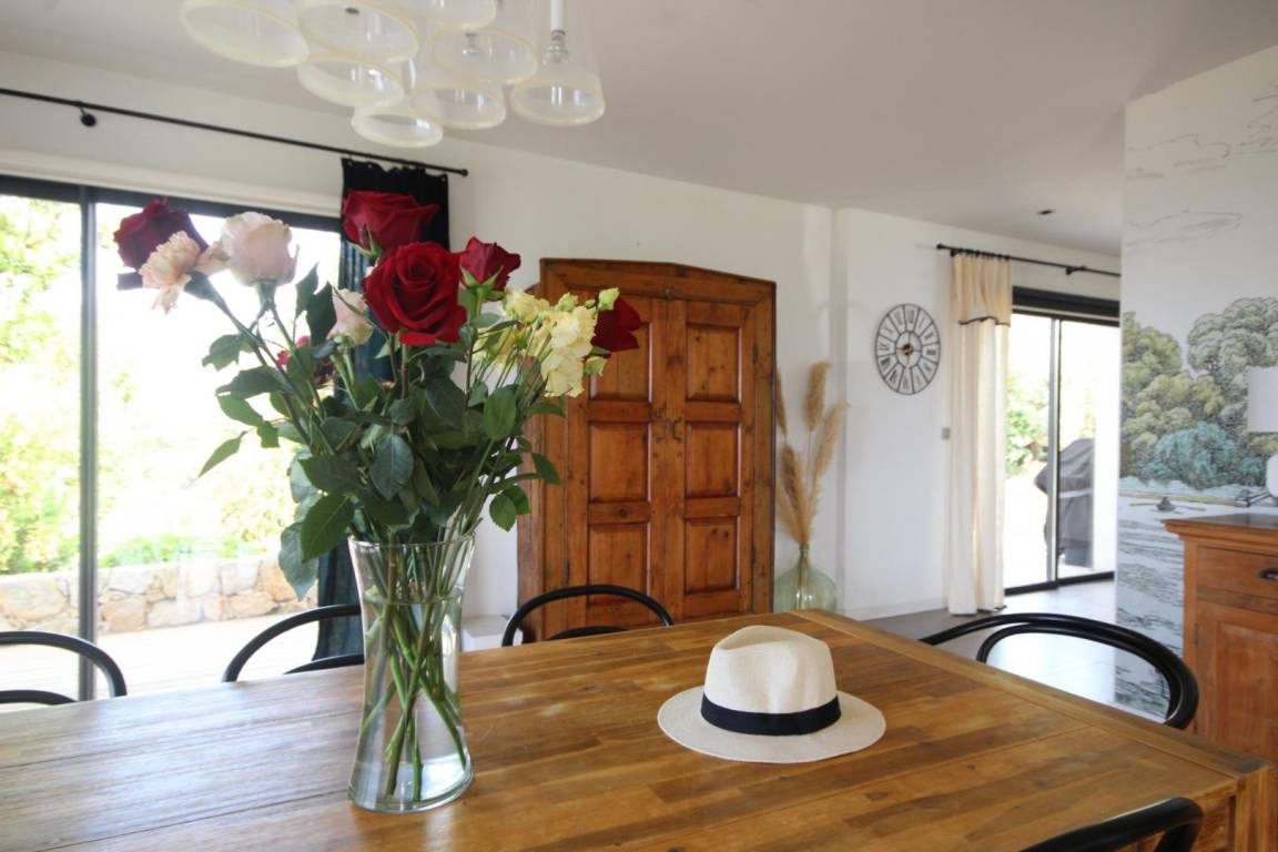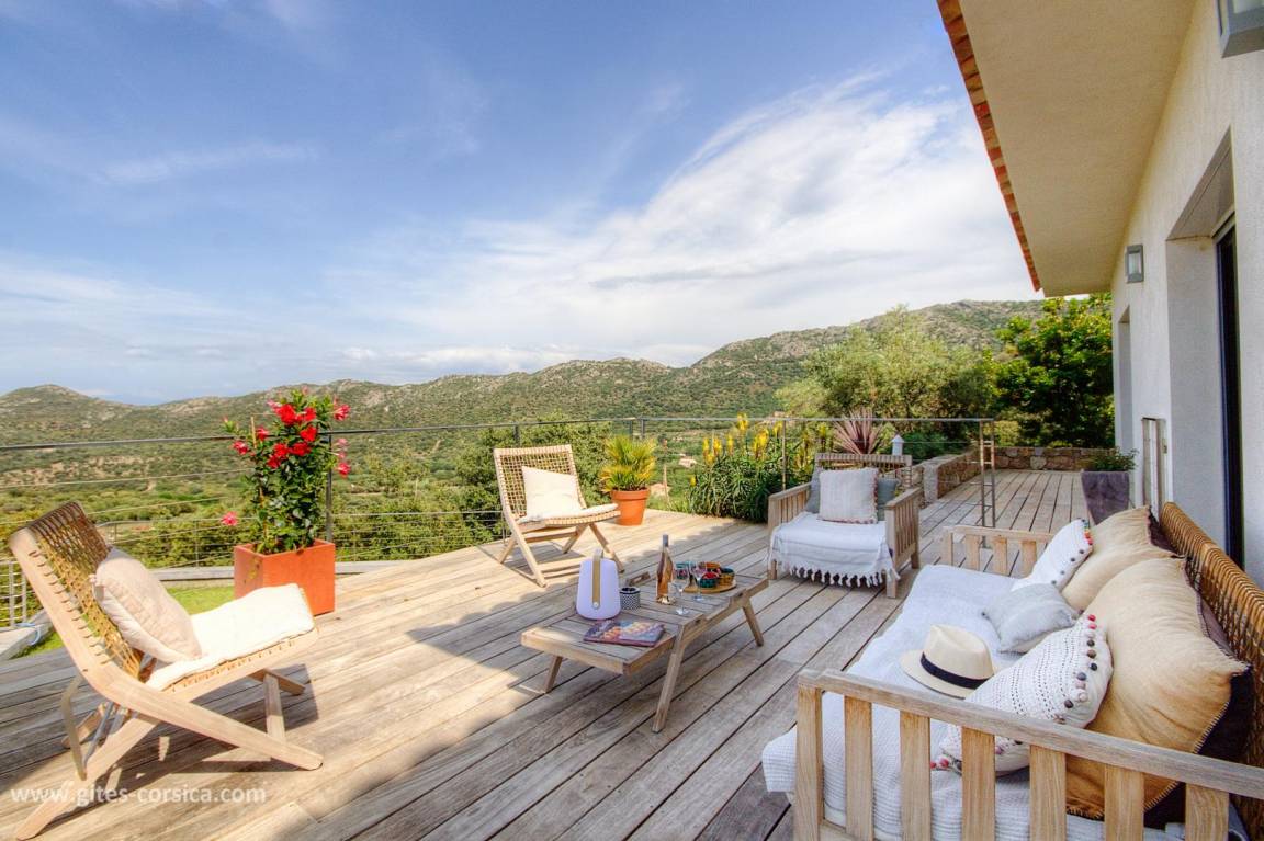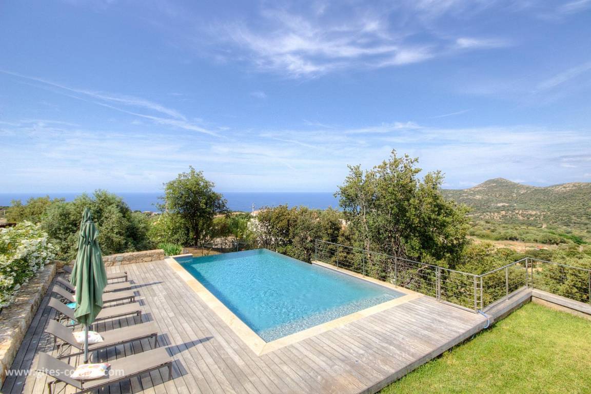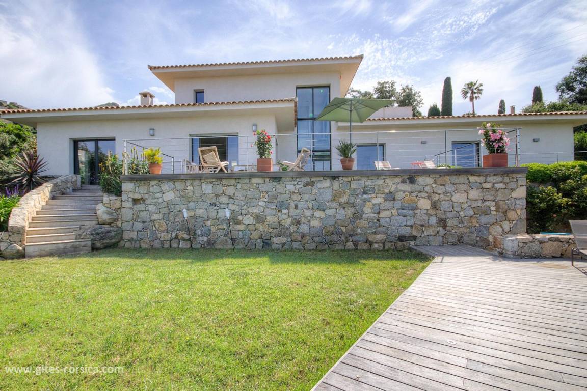 - 3 Holzterrassen im Erdgeschoss, davon eine von 50 m² mit Blick auf den Pool und das Meer.