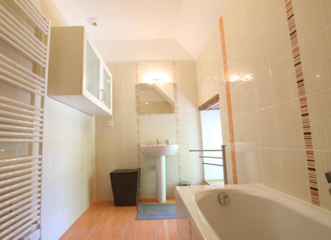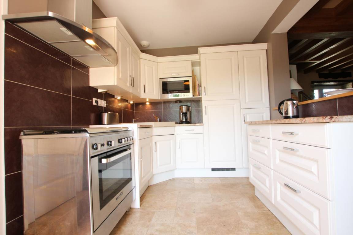 Freistehendes Haus. Erdgeschoss: Wohnzimmer mit Schlafcouch, Aufenthaltsraum, Kochnische, Duschbad mit WC. Obergeschoss: Schlafzimmer 1 (1 Doppelbett 160x200 cm), Schlafzimmer 2 (1 Doppelbett 140x190 cm), Schlafzimmer 3 (3 Einzelbetten 90 cm, davon 2 Etagenbetten), Schlafzimmer 4 (2 Einzelbetten 90x190 cm), 1 Kinderbett, Badezimmer, WC, Kaminofen, Fernseher, WLAN, Waschmaschine, Geschirrspüler, Wäschetrockner, Hauswirtschaftsraum. Elektrische Heizung inklusive. Bettwäsche und Handtücher gegen Gebühr. Küchentücher vorhanden. Reinigungsservice gegen Aufpreis. Privater, umzäunter Garten. Terrasse, Gartenmöbel, Schaukel, Grill, Bouleplatz, Teich.