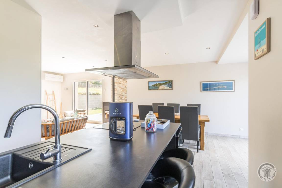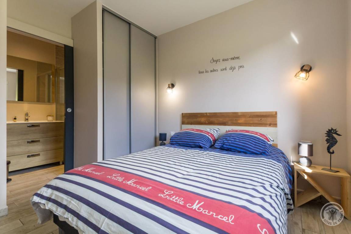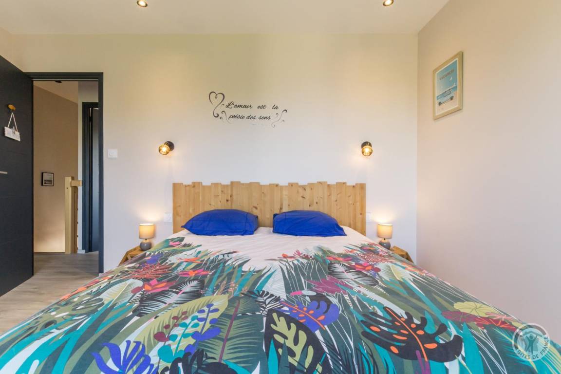 Freistehendes Haus. Wohnzimmer (TV, Glasfaser-Internet) mit Pelletofen. Offene Küche mit Kochinsel (Backofen, Induktionskochfeld, Geschirrspüler, Kühlschrank mit Gefrierfach, Mikrowelle, Weinkeller). Waschküche (Waschmaschine). Separate Toilette. Schlafzimmer 1 (Bett 140x190) mit eigenem Duschraum. Im Obergeschoss: Schlafzimmer 2 (2 Einzelbetten 90x200) mit Schreibtisch, Schlafzimmer 3 (Bett 160x200) mit Balkonterrasse, Schlafzimmer 4 (Bett 160x200), separate Toilette und Duschraum. Babyausstattung auf Anfrage. Heizung inklusive, reversible Luftwärmepumpe (Klimaanlage). Bettwäsche und Handtücher werden gestellt. Reinigungsservice gegen Aufpreis. Privater umzäunter Garten. 2 Terrassen, eine mit Pergola. Gartenmöbel. Liegestühle. Grill. Großer Abstellraum im Anbau des Hauses mit Spüle, Fahrräder vorhanden. Parkplatz.
