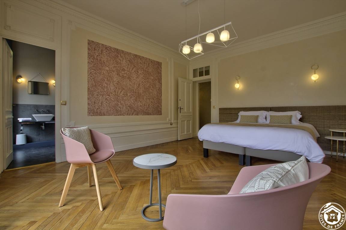 „Gite vraiment beau, spacieux avec une piscine intérieur très agréable en octobre. Par contre nous avons demandé d'augmenter la température et cela a été fait je jour de notre départ. Camion poubelle grue sous les fenêtres à 6h du matin 3 fois dans la semaine pendant 10 minutes. Avec ces fenêtres anciennes qui n'ont aucune isolation phonique un peu pénible pour se reposer mais sinon un endroit vraiment magnifique.“