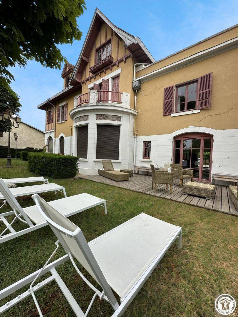 Im Herzen des Dorfes Montmerle-sur-Saône bietet dieses Bürgerhaus aus dem Jahr 1920 mit Hallenbad in seinen 5 Schlafzimmern im Obergeschoss Platz für bis zu 15 Personen. Dieses Art-Deco-Haus verbindet Charme und Komfort mit einer verrückten ganzjährigen Atmosphäre in diesem Haus. Das Haus befindet sich in einem Wohngebiet mit privatem Garten, Parkplatz und sicherem Zugang, um die Ruhe des Ortes zu genießen. Sobald sich die Veranda öffnet, ist das Dekor eingestellt und ist nichts anderes als eine Parade schimmernder Farben. Am Eingang zu Ihrer Linken befindet sich das beheizte, sichere und einzigartige Hallenbad mit seiner Holzterrasse; zu Ihrer Rechten die außergewöhnliche Empfangshalle mit ihren Buntglasfenstern, ihrem Kamin (mit Einsatz und in Betrieb), ihrer großen Holztreppe, die zu den Schlafzimmern führt, dem riesigen Kristall-Kronleuchter. Vom Flur aus haben Sie direkten Zugang zum großen Wohnzimmer, das sich durch sein Erkerfenster auszeichnet, das Esszimmer mit raffinierter De