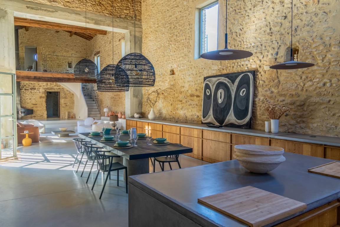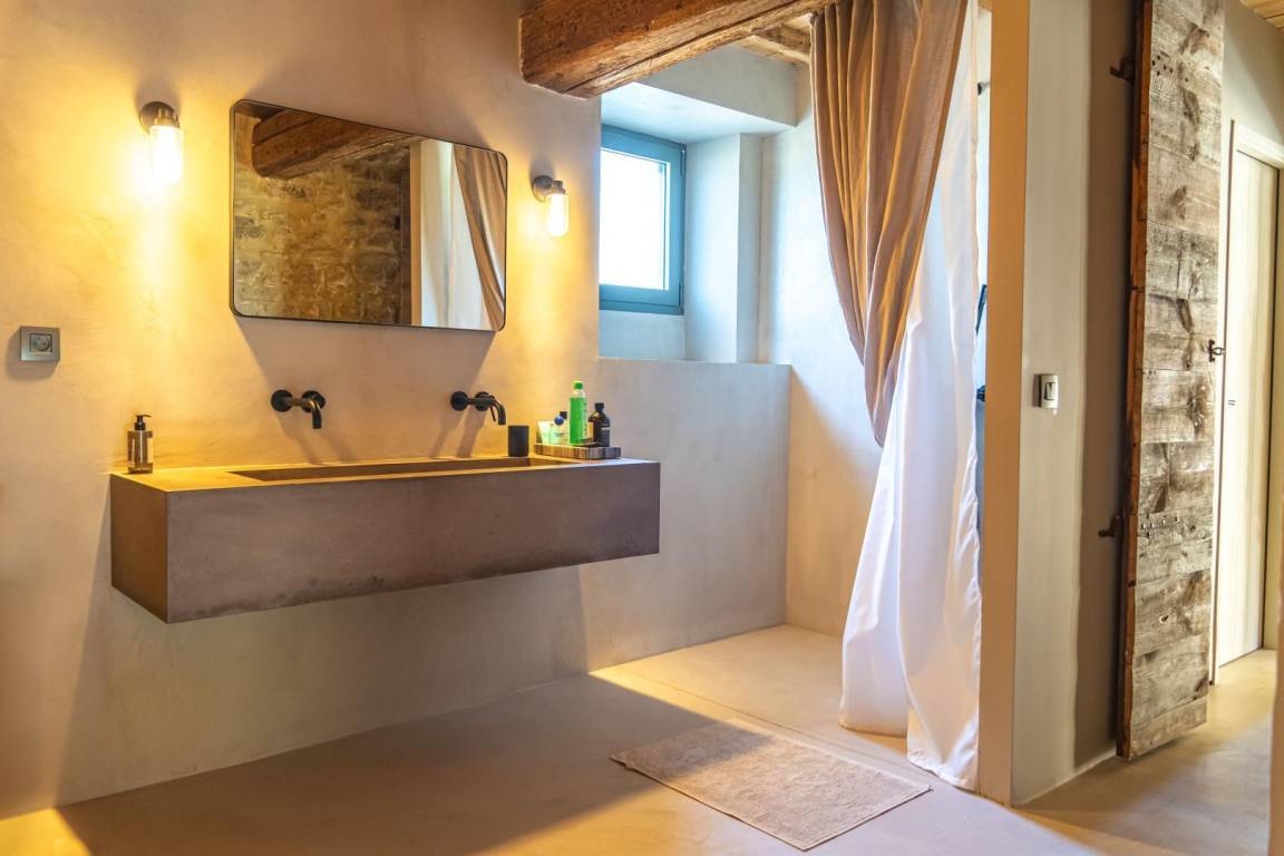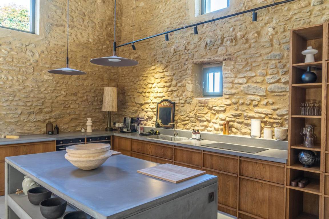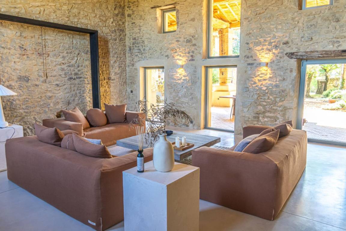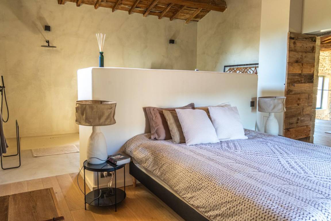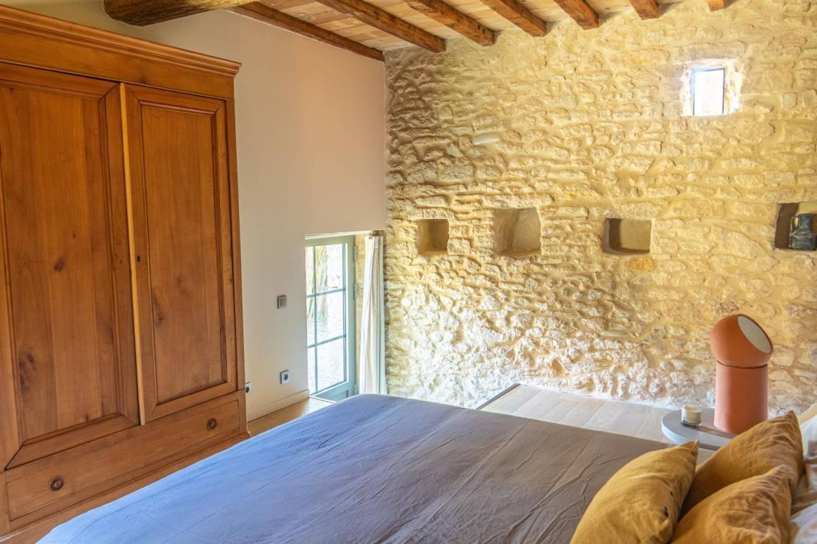 Das Mas des Souvenirs ist die Komplettversion des Mas du Vieux Marronnier (10 Personen) und des Espace Cathédrale (4 Personen). Mit dieser Konfiguration haben Sie insgesamt Platz für 14 Personen in 6 Schlafzimmern. Sie können also mit Familie oder Freunden anreisen und gleichzeitig Ihr „Zuhause" gemeinsam, aber unabhängig genießen. Das Mas du Vieux Marronnier (Nr. G208005): Der Eingang führt über 6 Stufen zum Wohnzimmer mit Zugang zur Wohnküche, einem Schlafzimmer (160 x 200 cm) und einem Duschbad/WC. Obergeschoss: 2 Schlafzimmer (140 x 190 cm), 1 Schlafsaal (3 x 90 x 190 cm, 1 x 100 x 190 cm), Duschbad, separates WC. Der Domraum (Nr. G208006): Erdgeschoss: Wohnküche (über 100 m²), Wohnzimmer (50 m²), Schlafzimmer mit Dusche (140 x 190). Obergeschoss: Schlafzimmer (160 x 200, Dusche, WC). Geschlossener Innenhof, Parkplatz, Terrasse, Garten, Swimmingpool (12 x 5 m, Tiefe 1,4 bis 2 m, April bis September je nach Wetterlage, mit Alarmanlage), Waschküche/Sommerküche (22 m²).