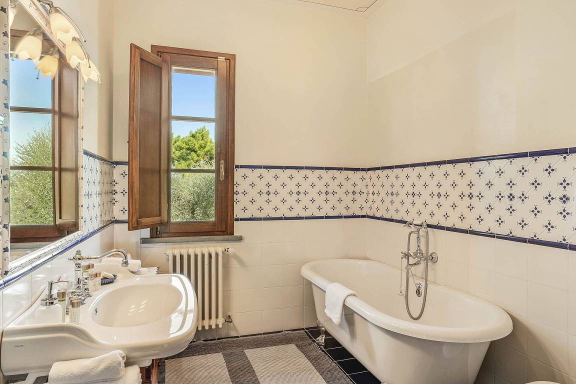 Badezimmer 1: Waschbecken, WC, Bidet, Badewanne, Fön, WiFi Internet.