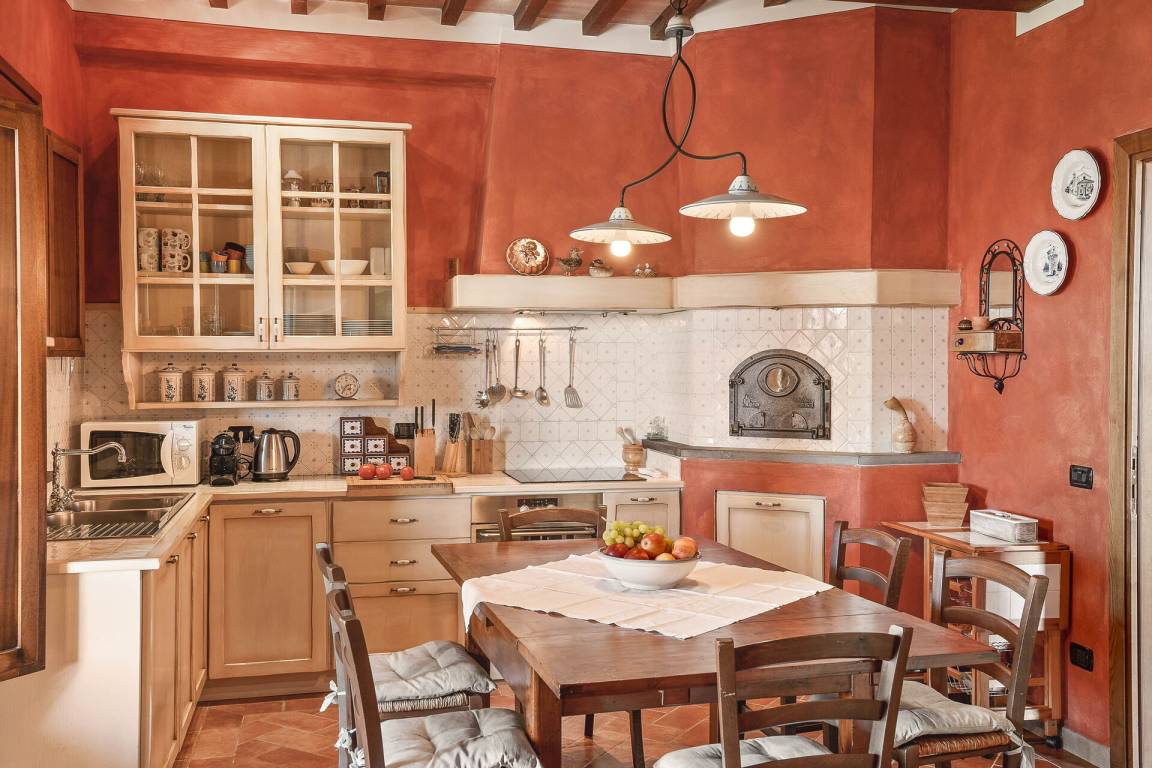 Küche: gut ausgestattete Küche, Esstisch, Spülmaschine, Kühlschrank, Tiefkühler, Mikrowelle, Herd, Ofen, Toaster, Kamin, WiFi Internet, Ausgang auf den Garten, Ausgang auf den Patio.