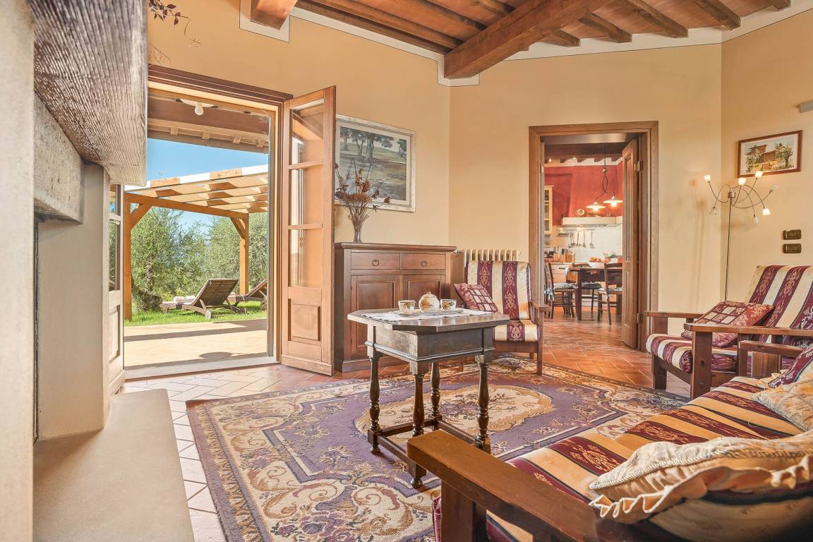 Wohnzimmer: Sofa, Sessel, Kamin, Esstisch, WiFi Internet, Satelliten-TV, TV, Ausgang auf den Garten, Ausgang auf den Patio, Ausgang auf die Terrasse, Ausgang auf die Veranda.