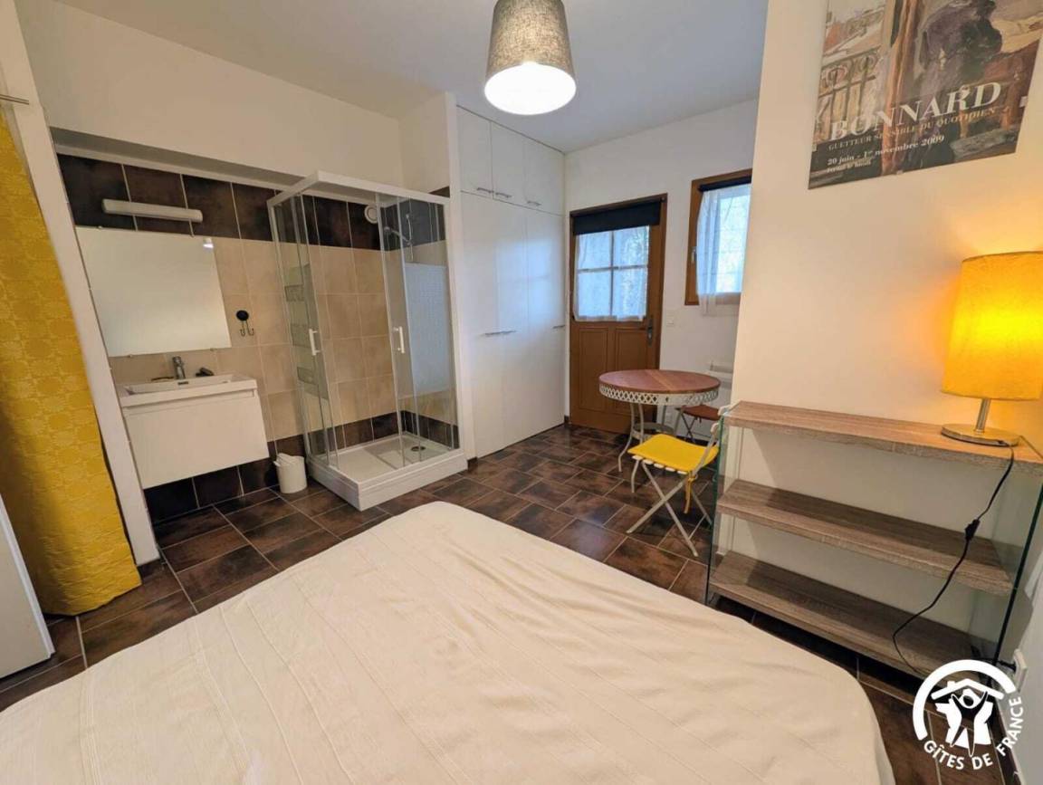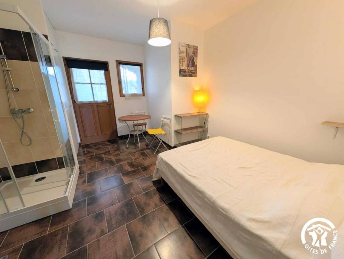 „Très bon accueil des propriétaires. Gîte très bien situé. En raison d'une très mauvaise météo, fuites d'eau sur les appuis de deux fenêtres côté Sud, Salle de bain et chambre.“