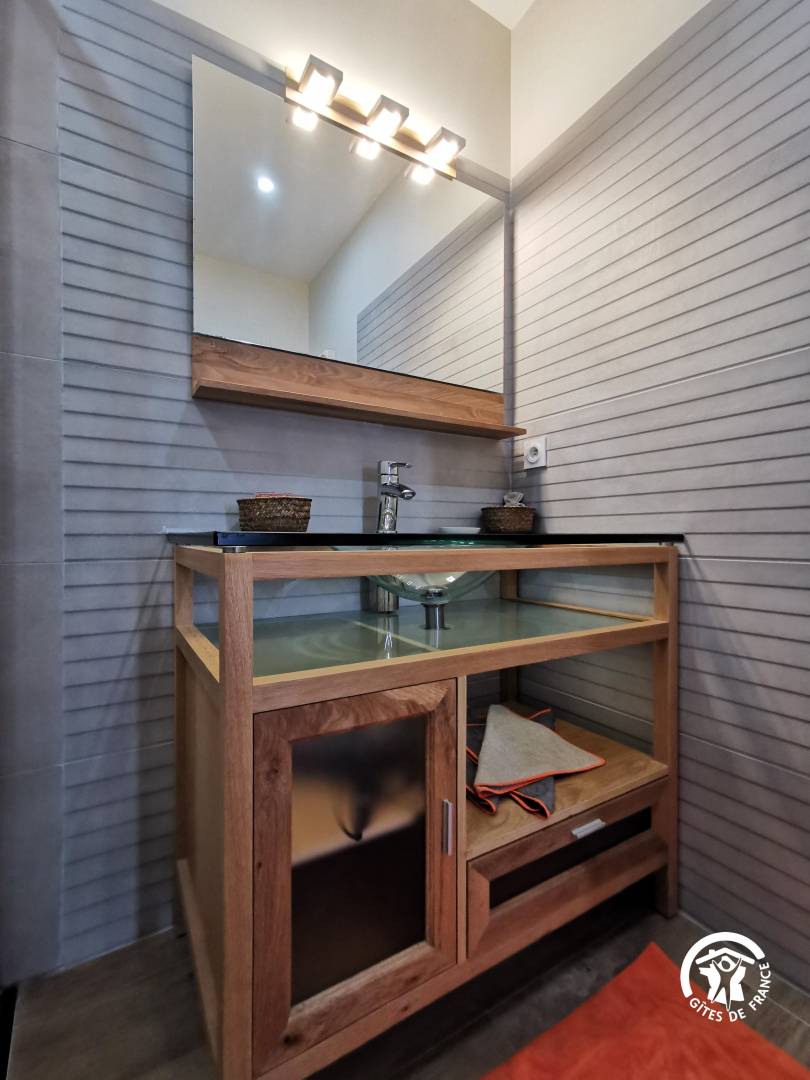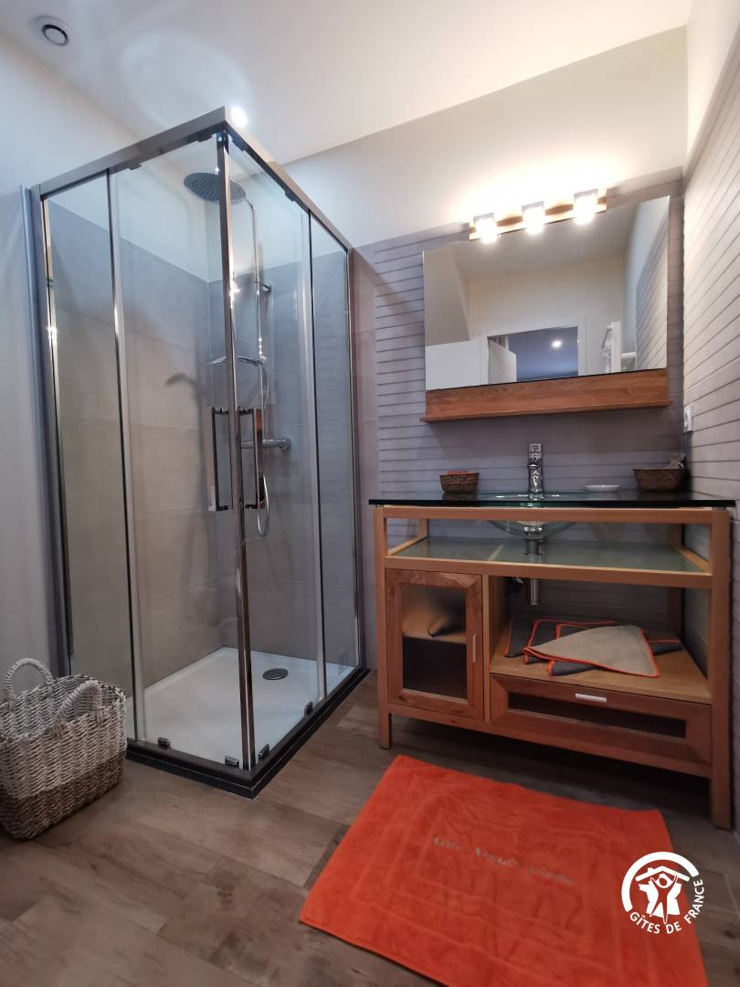 „Nous avons été accueillis par la propriétaire charmante et tres disponible. Le gite correspond bien à la description, moderne, grand, propre; les 2 chambres du bas donnent sur une cour intérieure et la vue depuis la terrasse est tres belle (nous n'avons pas utilisé le jacuzzi qui se trouve sur la terrasse parce qu'il faisait trop chaud, mais par temps plus frais cela doit être super).“