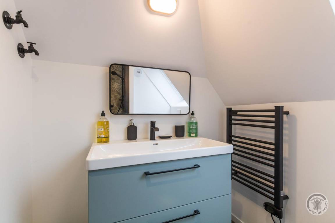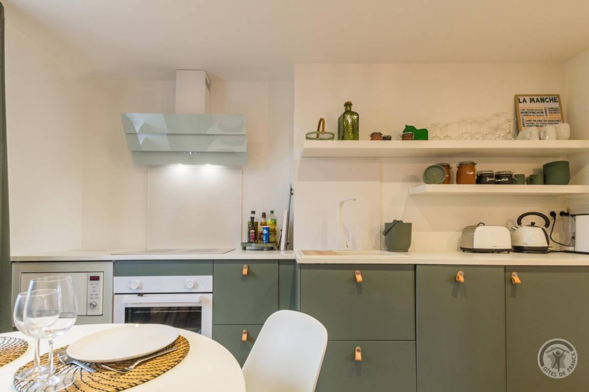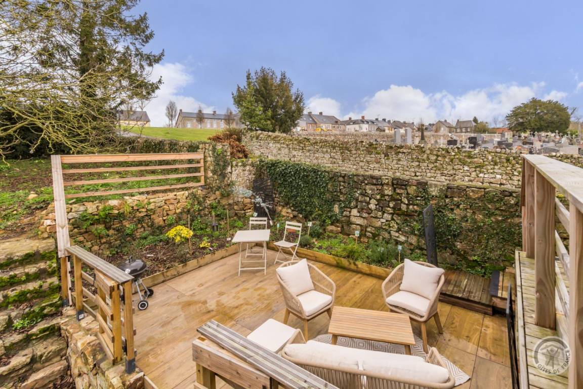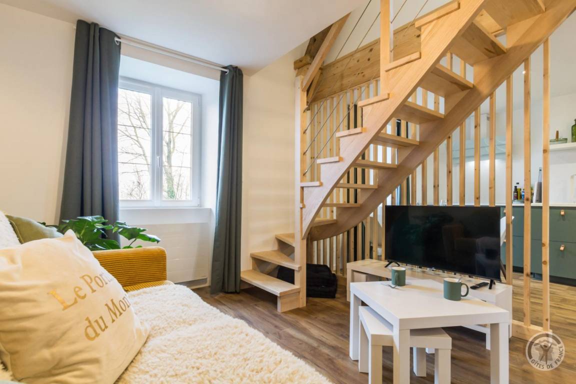 Im Herzen des Départements Manche thront der Hügel Montpinchon und überblickt die bezaubernde Landschaft um Coutances. Hoch oben auf diesem Aussichtspunkt bietet das Anwesen von Angélique und Laurent einen atemberaubenden Blick auf die Bocage-Landschaft. Angrenzend an das traditionelle Langhaus haben sie ein charmantes, komfortables Maisonette-Apartment in sanften, beruhigenden Farben komplett renoviert. Es verfügt über eine gemütliche, von Mauern geschützte Terrasse, die sich ideal zum Entspannen in den wärmeren Monaten eignet. Von dort aus lässt sich der Kirchturm, ein markantes Wahrzeichen, bewundern. Wunderschöne Wanderwege beginnen direkt am Haus, und die Eigentümer geben Ihnen gerne Tipps zu den Schätzen dieser Region, eingebettet zwischen Meer und Bocage-Landschaft – ein Ort, der von Jahrmärkten und Festen belebt wird.