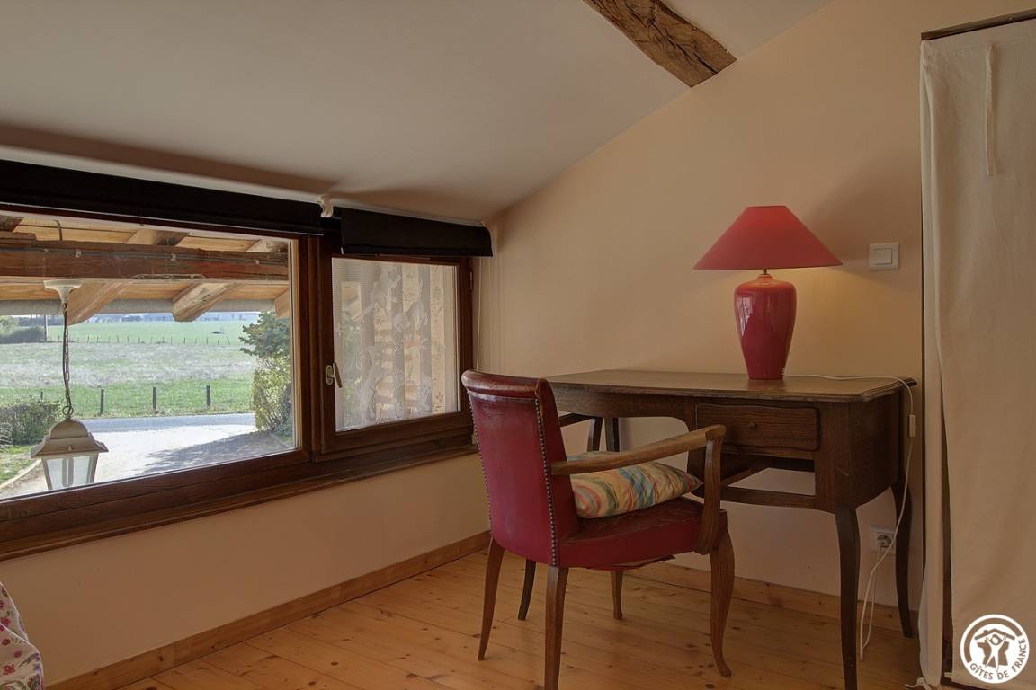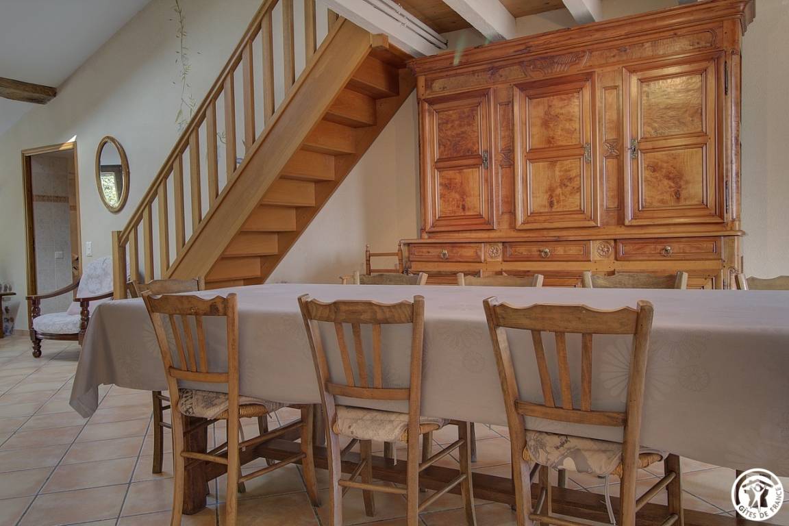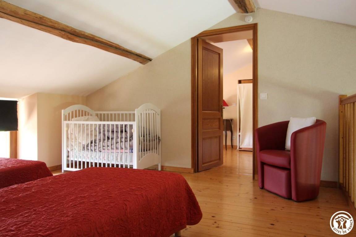 Die Unterkunft La Corbine (100m²) ist auf 2 Ebenen und befindet sich in einem alten Bauernhof, in der Erweiterung des Hauses der Eigentümer. Das Erdgeschoss besteht aus einem geräumigen Wohnzimmer (Schlafcouch für 2 Personen 160 cm), funktional und gut ausgestattete Küche halboffen zu den großen Speisesaal, ein Bad mit ebenerdiger Dusche und WC. Im Obergeschoss 1 Schlafbereich im Zwischengeschoss (2 Einzelbetten), 1 Schlafzimmer (1 Doppelbett). Zentralheizung Holz und Gas, am Boden. Cottage f