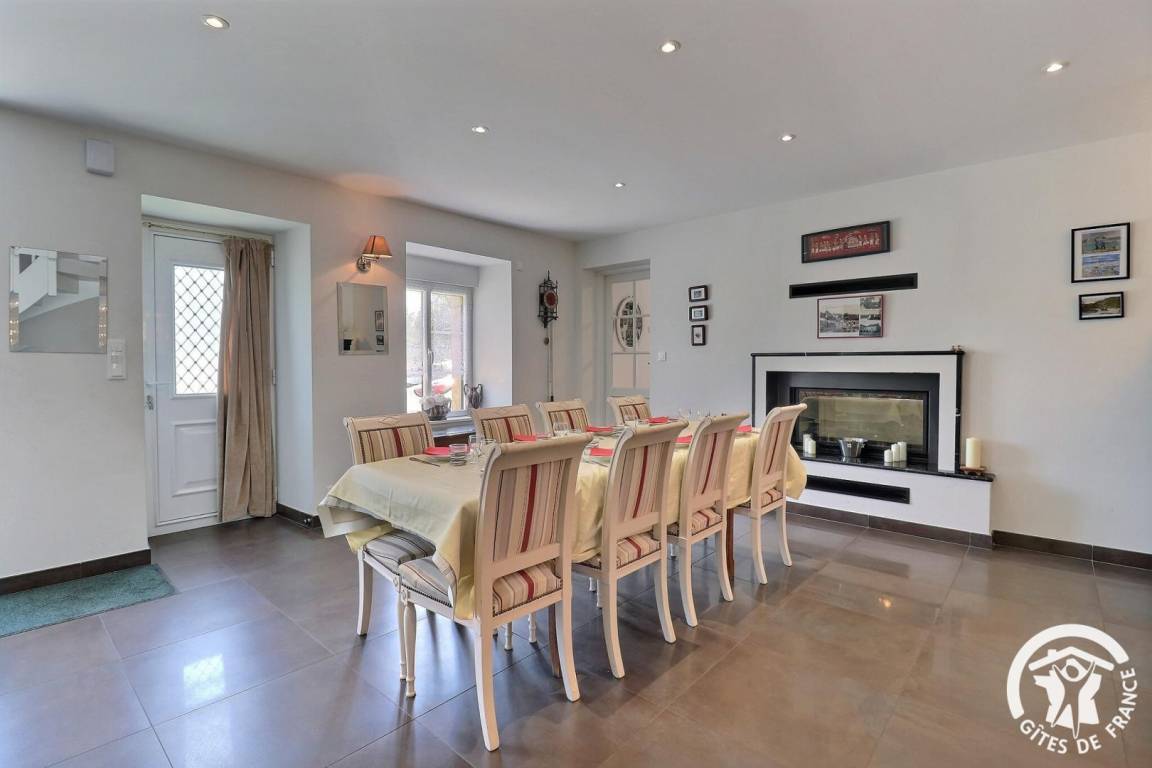 „Le gîte est très pratique et confortable. Le seul point noir est la route à côté: Il faut être prudent en sortant, les voitures arrivent très (trop) vite. On a aimé la répartition des chambres (5 pour 9 personnes), les nombreuses salle de bain, qui permettent une cohabitation sans difficulté. Et en plus, le gîte était décoré pour Noël et un far nous attendait!On espère revenir en été pour apprécier encore plus le joli environnement.“