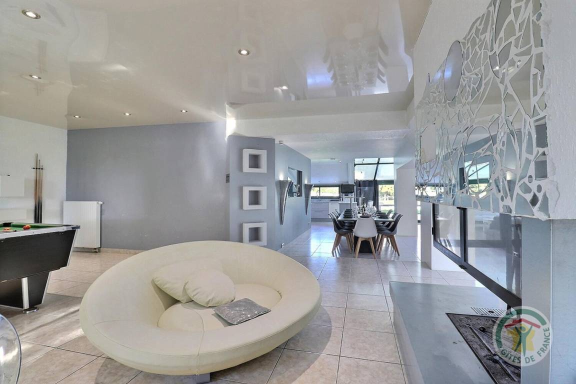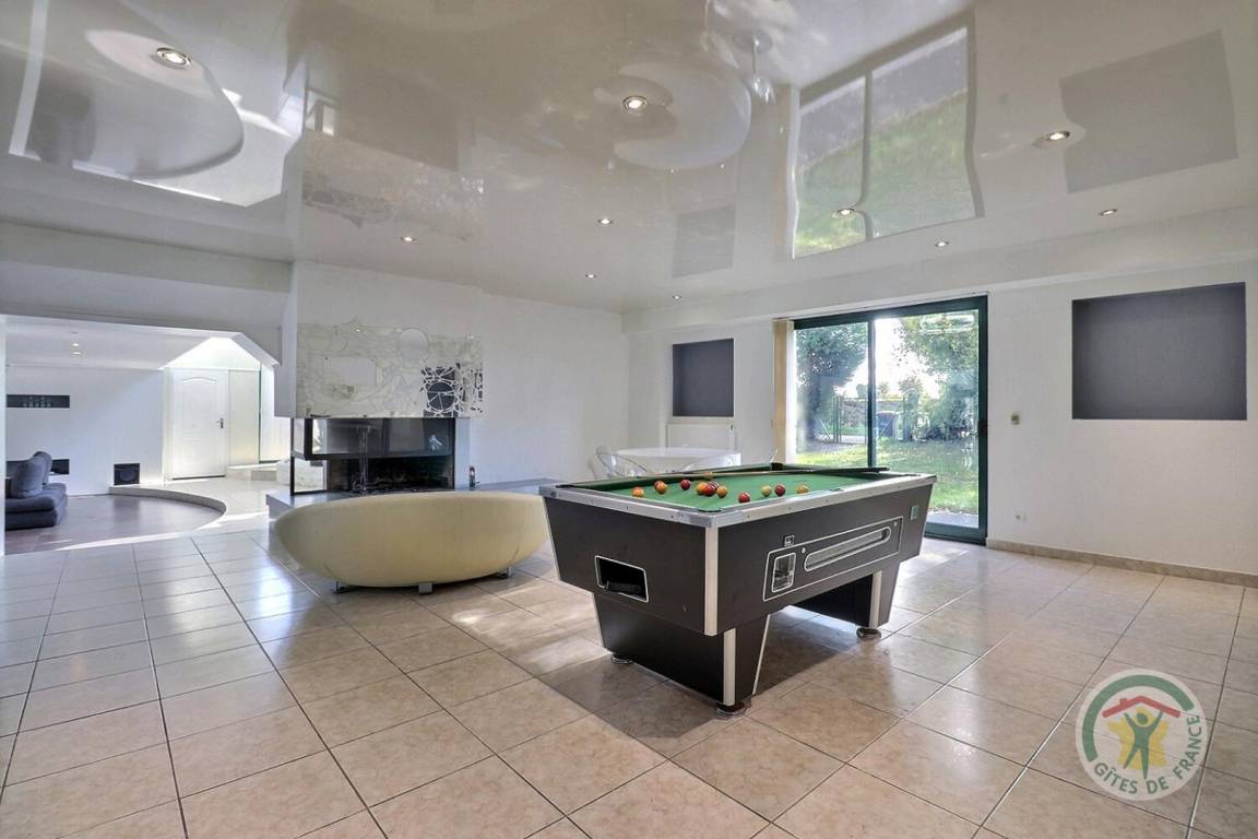 „Nous étions 10 à découvrir cette maison, au design original, qui se distingue par l'espace de la pièce de vie, des chambres décorées avec gout, et pour le plaisir de tous un billard, un jacuzzi et un sauna bienvenus durant ces quelques jours d’hiver. La propriétaire est très agréable, réactive et conciliante. Bref, un gite que je recommande sans hésitation qui laissera à toute la famille de beaux souvenirs, ou nous n'hésiterons pas à revenir.“