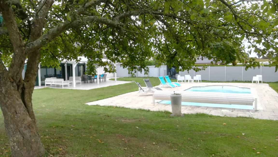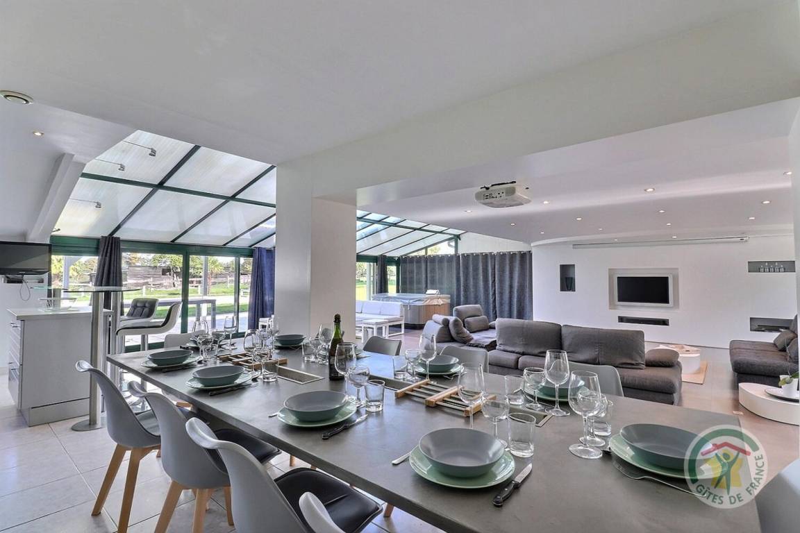 „Séjour en famille avec nos 4enfants de 17 à 9ans. Le gîte est spacieux et il y a de quoi s occuper entre le billard, le spa, le sauna, le badminton, le basket etc. Nous avons eu du soleil toute la semaine et même si la piscine n était pas accessible (avril) les canapés extérieurs ont été appréciés. Le grand salon où tout le monde peut s asseoir et le vidéo projecteur ont été bien apprécié. Bp de rangements dans chaque pièce. La cuisine est bien équipée (avec l essentiel) et placards disponibles pour le rangement. Propriétaires avenants et disponibles.“