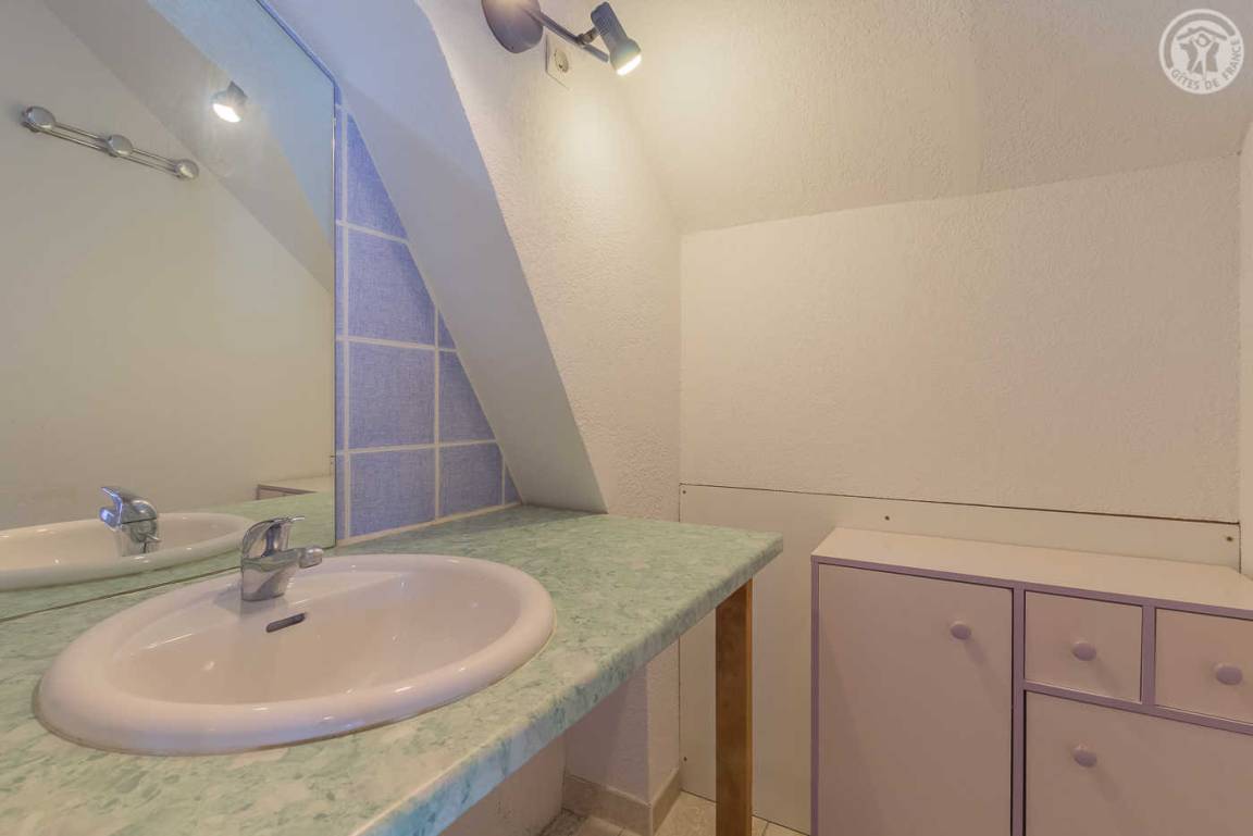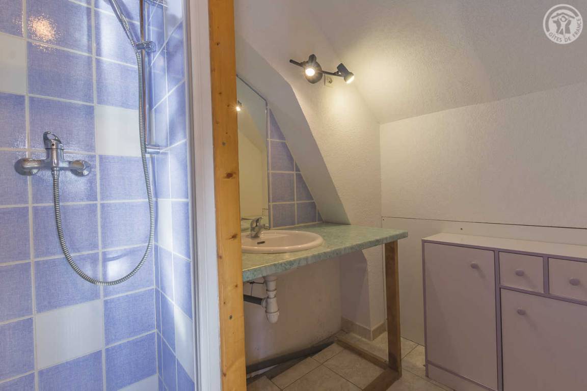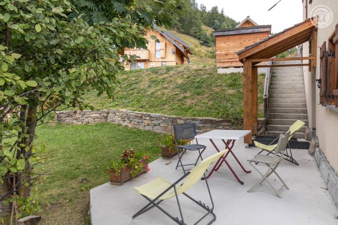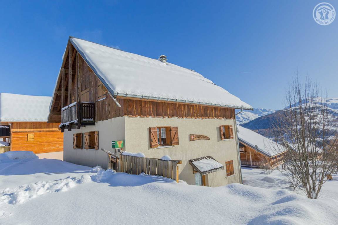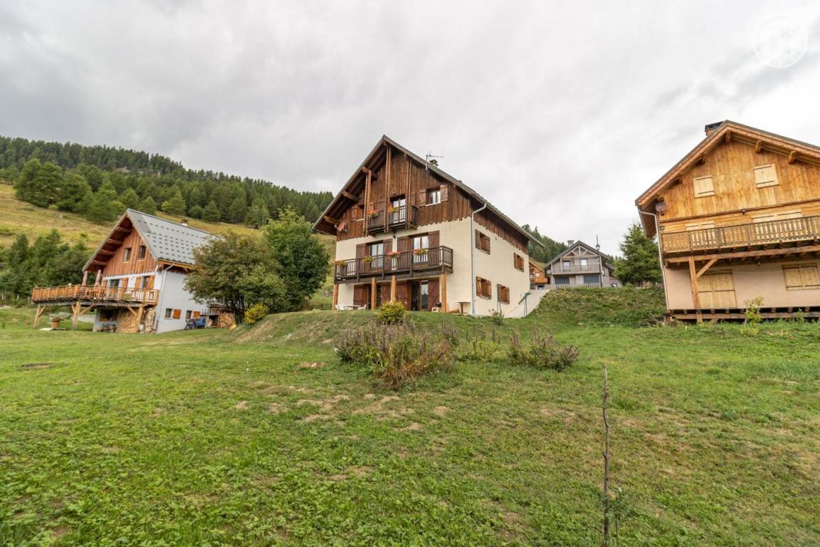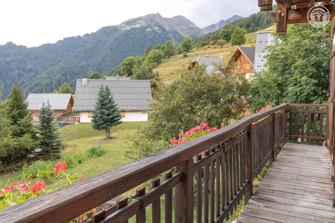 Chalet mit zwei Gîtes und der Wohnung des Besitzers. Gîte im zweiten Stock des Hauses: Wohnzimmer mit Küchenbereich mit angenehmer Südlage und freiem Blick auf die Berge. 1 Schlafzimmer (1 Doppelbett 140x190cm), 1 Mezzanine offen zum Wohnzimmer (2 Einzelbetten 90x190cm). Waschküche im Erdgeschoss mit gemeinsamer Waschmaschine und Trockner + elektrischer Schuhtrockner, Badezimmer (Dusche), separates WC. Angenehmer Balkon. Skiverbindung Karellis 0,5 km, Karellis 4 km. Gesamtfläche 41 m² Dachgeschoss inklusive.