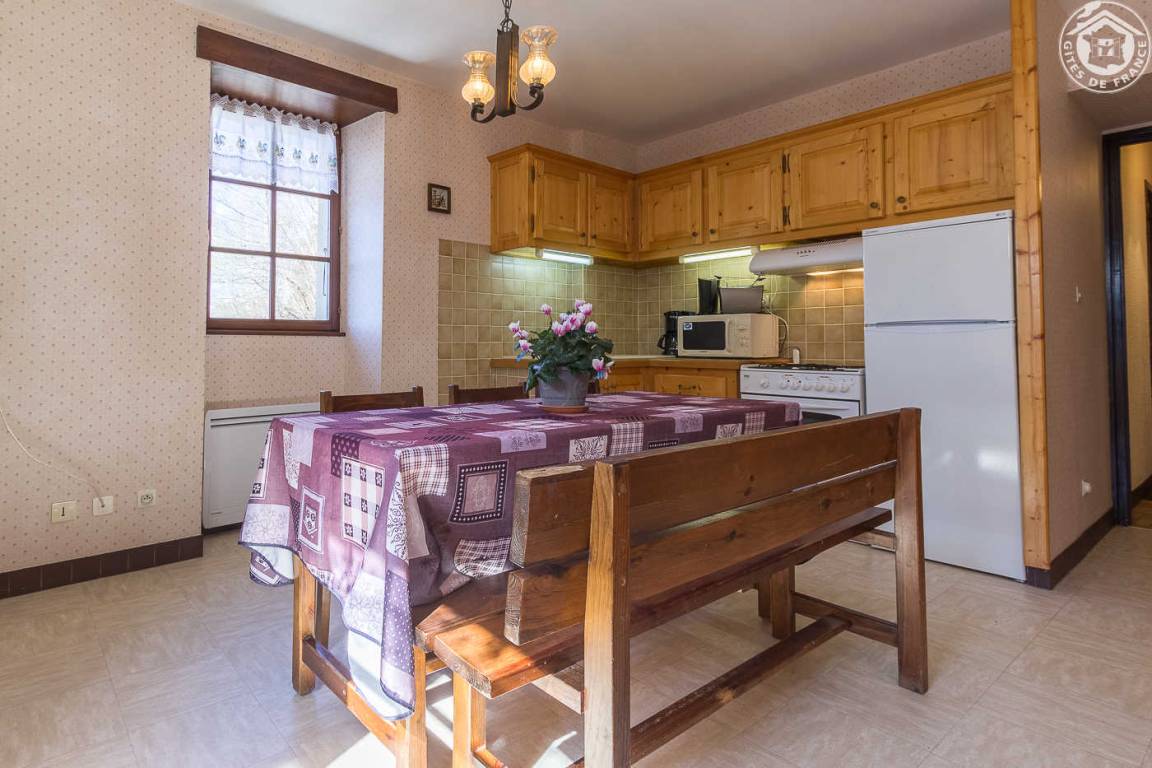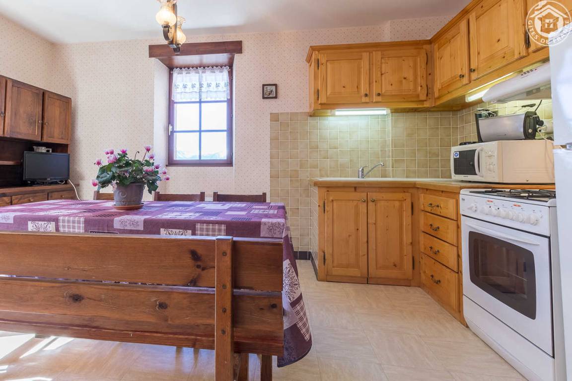 5 Unterkünfte im Haus. 1. Stock: Wohnzimmer-Küchenbereich (2 ausziehbare Einzelbetten), Waschmaschine + Trockner gemeinsam mit dem Rathaus (Waschmittel vorhanden), 1 Schlafzimmer (1 Doppelbett), Badezimmer (Badewanne). Gemeinsame Terrasse. Ski St. François-Longchamp oder Seythenex. Schneeschuhe vor Ort. See St. Alban d'Hurtières 19 km.