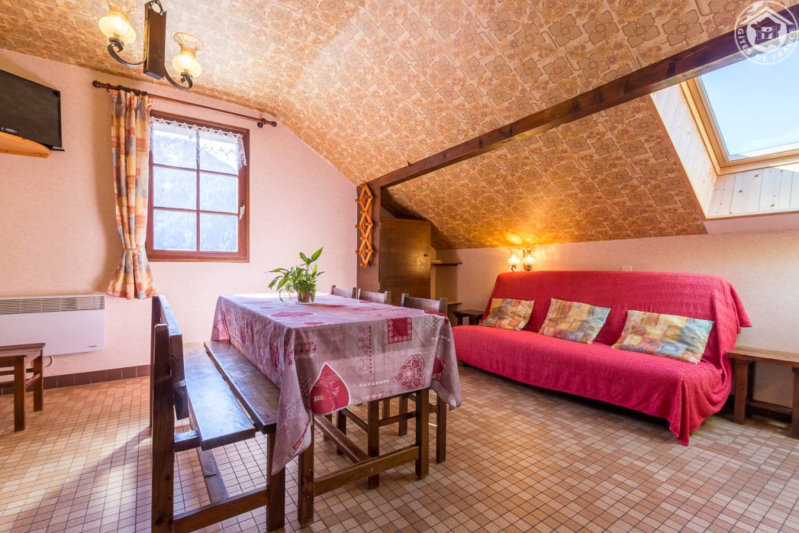 5 Unterkünfte im Haus. 2. Stock (Zugang auf der gleichen Ebene): Wohnzimmer-Küche Lounge-Bereich (1 Schlafsofa für 2 Personen), Waschmaschine + Trockner gemeinsam mit dem Rathaus (Waschmittel vorhanden), 1 Schlafzimmer (2 Einzelbetten), Badezimmer Badezimmer (Badewanne). Gemeinsame Terrasse. Ski St. François-Longchamp oder Seythenex. Schneeschuhe vor Ort. See St. Alban d'Hurtières 19 km.