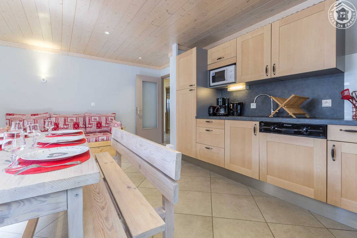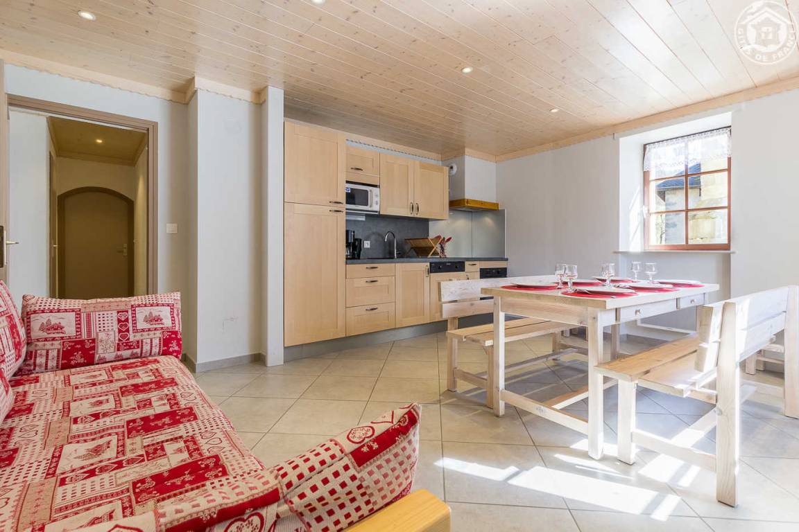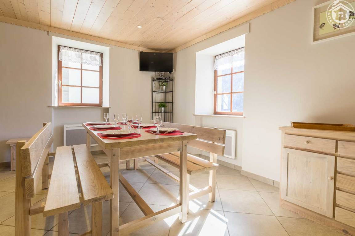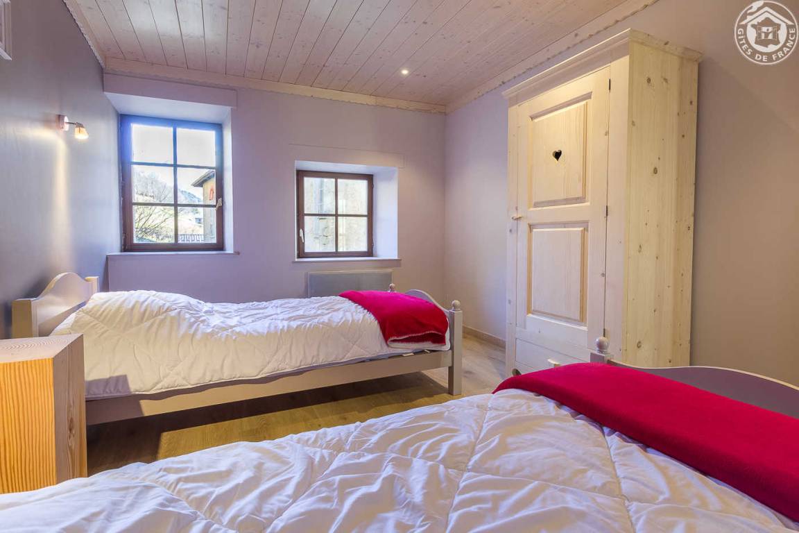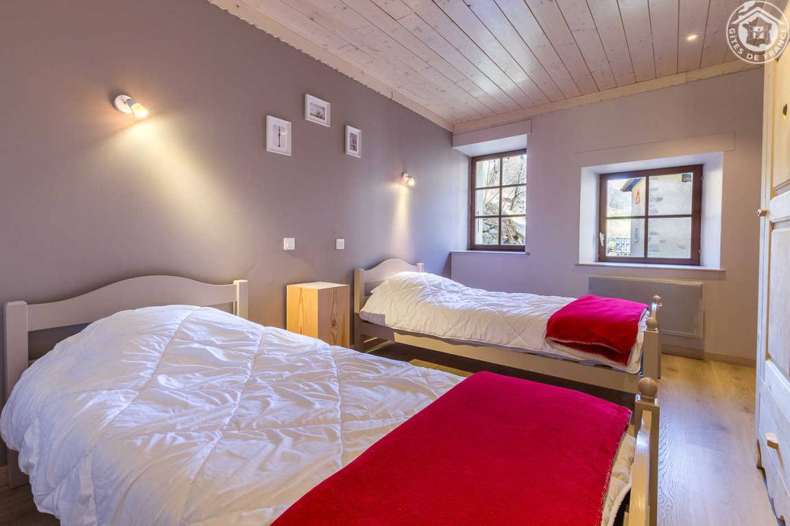 5 Unterkünfte im Haus. Erdgeschoss: Wohnzimmer-Küche Lounge-Bereich (1 Ausziehsofa 2 Einzelbetten), 2 Schlafzimmer (1 Doppelbett 160 x 200 cm / 2 Einzelbetten), Badezimmer (Dusche), separates WC. Gemeinsamer Wäschetrockner im Rathaus zu bezahlen. Gemeinsame Terrasse. Ski St. François-Longchamp oder Seythenex. Schneeschuhe vor Ort. See St. Alban d'Hurtières 19 km.