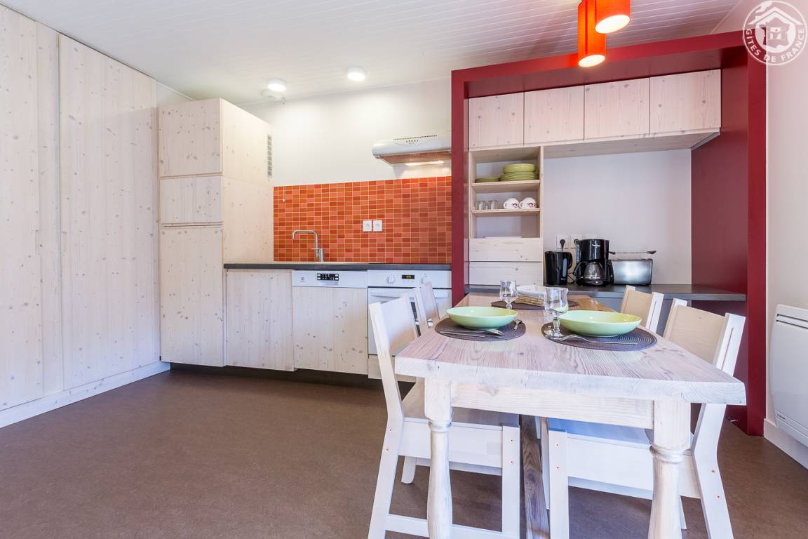 „Très bon logement, moderne, dans le style chalet. Un vrai sentiment d'espace malgré seulement 26 m2, bonne optimisation de la place, bon aménagement. Vaisselle, literie, électroménager très bien fournis. Pas de produits de salle de bain (gel douche, serviette), mais cela était précisé dans l'annonce. Cadre dépaysant, très calme avec sentiers de rando à proximité. Attention pas de commerce accessible à pied dans les alentours ! Très bon escale.“