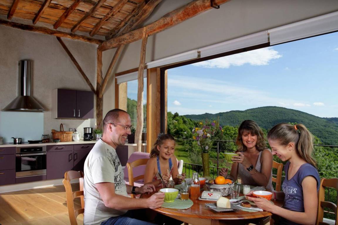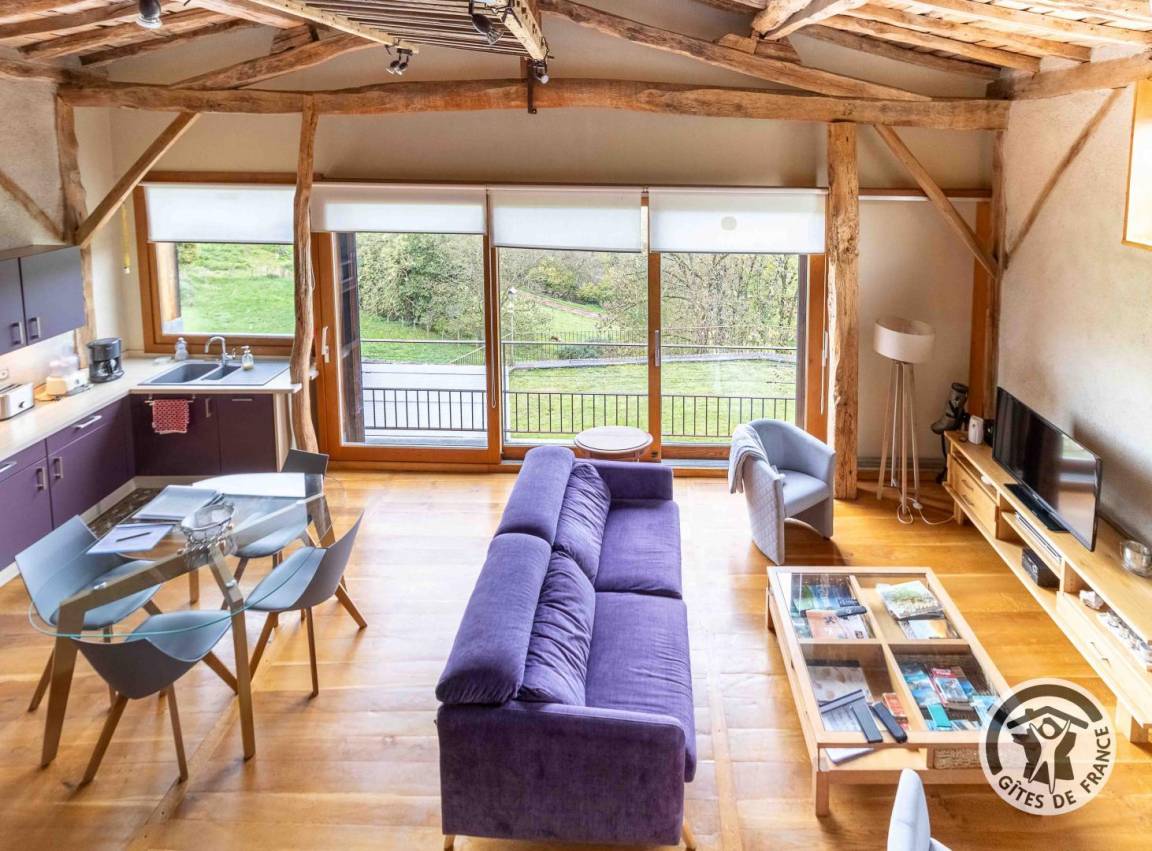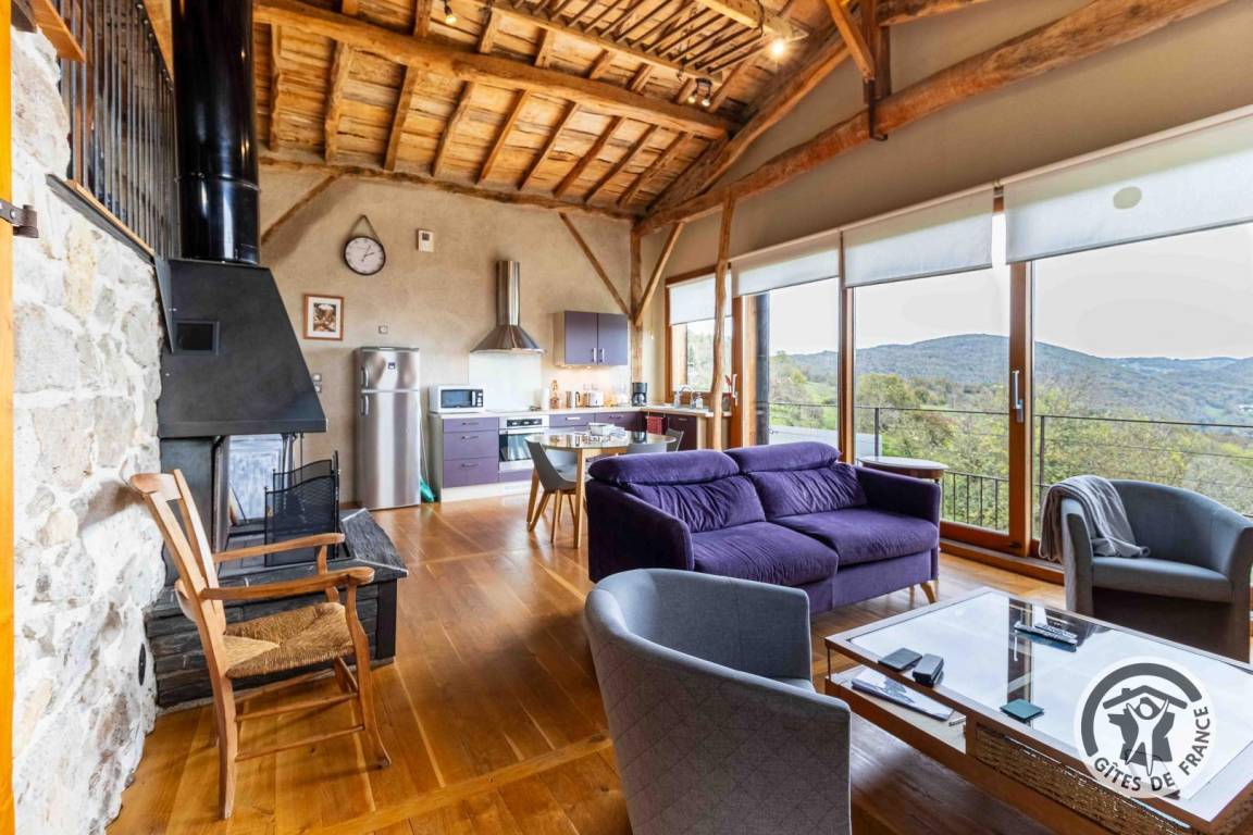 „Cette ancienne grange a bénéficié d'une rénovation réussie, tout confort tout en gardant son caractère rurale, comme par exemple d'avoir maintenu sa charpente apparente qui est magnifique. Autre point fort l'immense baie vitrée libérant une large vue sur de magnifiques vallons, le matin avec le lever du soleil. Pourquoi seulement 4 en confort cela dépend de nos propres personnes et notre age excessif ce gite est sur 3 niveaux avec toilettes au premier, pour les moins de 75 ans cela n'est plus un inconvénient, d'autant que tout autour vous avez des possibilités multiples de visites et de faire de la rando donc n'hésitez pas allez y“