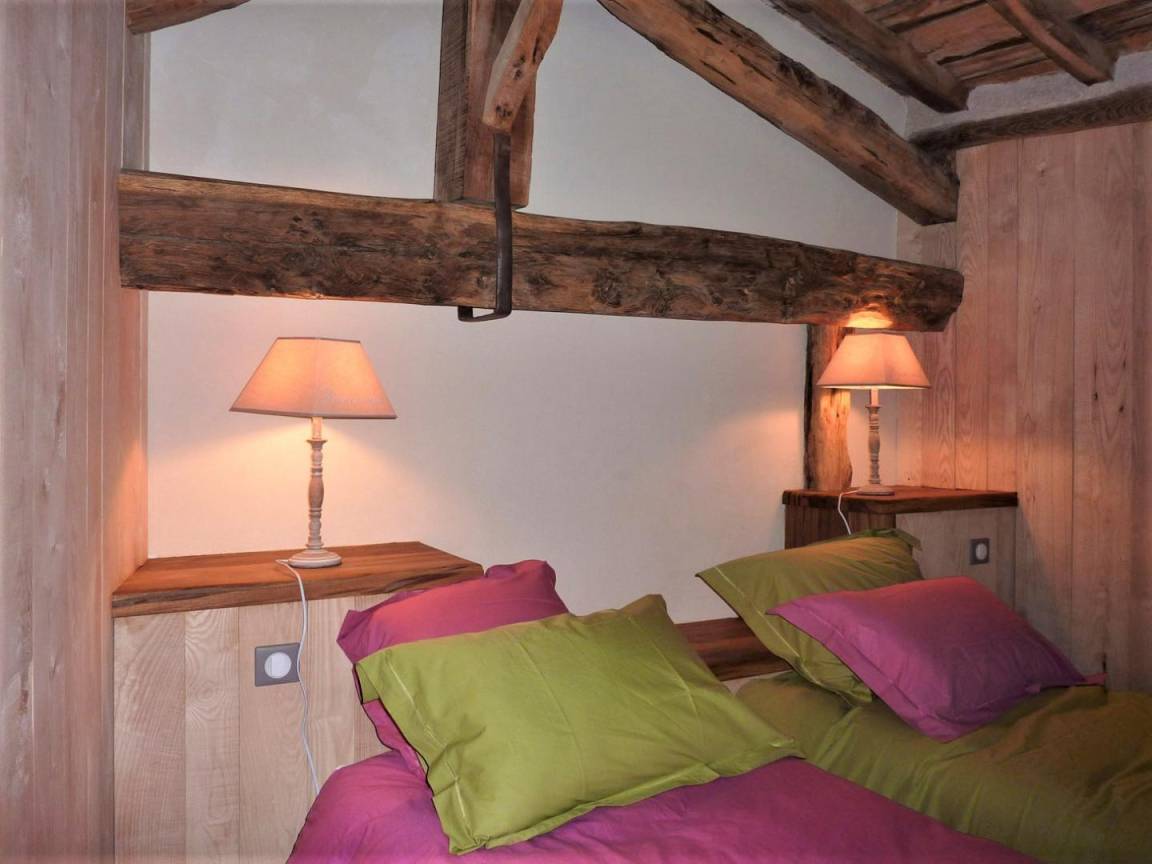 „Magnifique petit chalet restauré avec goût et des matériaux nobles, écolo, immense baie vitrée qui invite au rêve et à la contemplation Nous y reviendrons très certainement“