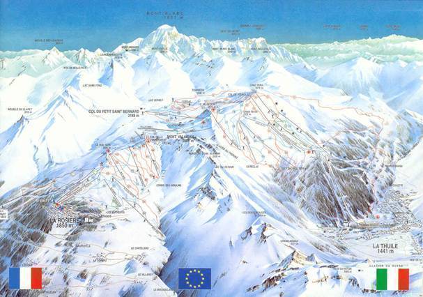 1 Ferienhaus in einem Haus mit 2 weiteren Unterkünften. 2. Stock (Zugang über Treppe zu einer Ebene): Wohnzimmer-Küchen-Loungebereich, 3 Schlafzimmer (1 Doppelbett/1 Doppelbett 160x190/2 Einzelbetten 90x190 cm), Badezimmer (Badewanne), Balkon, kleiner Garten. Betten bei Ankunft bezogen. Skifahren La Rosière/San Bernardo 7 km. Gesamtfläche des Ferienhauses: 79 m² inklusive Dachgeschoss.