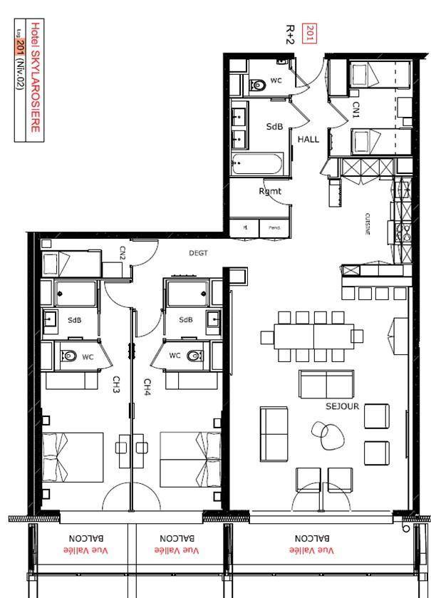 Innerhalb der Residenz können Sie Ihren Tag auch mit einem Moment der Entspannung im Sky Spa ausklingen lassen! Fläche von ungefähr 272 m². 3te Etage. Niveau 0 : Wohnzimmer. Schlafzimmer mit 2 Einzelbetten (90*200). Schlafzimmer mit Balkon, Doppelbett (160*200), , WC. Schlafzimmer mit Balkon, 2 Einzelbetten (90*200). Küche mit Bar, Kaffeemaschine (Nespresso et filtre), , Backofen, Geschirrspülmaschine, Mikrowellenherd, 2 Glaskeramikkochfelder, Kühl-Gefrier-Kombination. Badezimmer mit WC. separates WC. Balkon. Keller. Niveau 1 : Schlafzimmer mit 3 Einzelbetten (90*200), , WC. 2 Schlafzimmer mit Balkon, Doppelbett (160*200), , WC. 2 Schlafzimmer mit Balkon, 2 Einzelbetten (90*200). Schlafzimmer mit 2 Einzelbetten (90*200). offener Schlafbereich mit 2 Stockbetten (80*190). 2 duschräume mit WC. Niveau 2 : Badezimmer mit WC. mit 5 Einzelbetten (90*200). Die oberen Betten sind nicht für Kinder unter 6 Jahren geeignet.