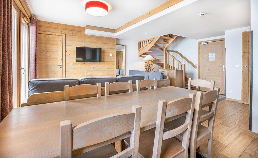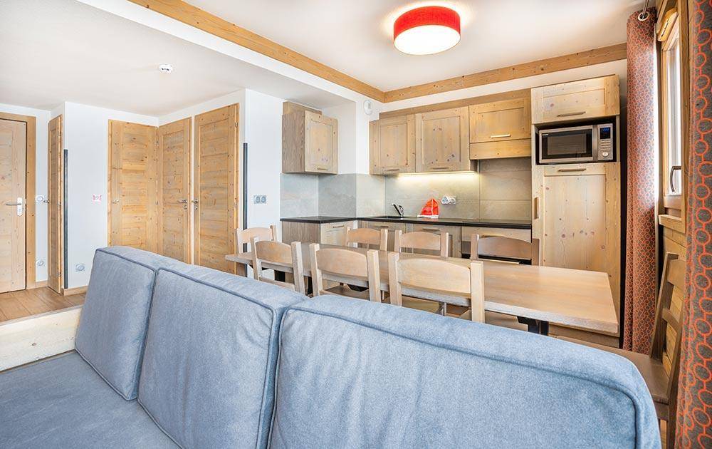 Fläche von ungefähr 74 m². 4te Etage. Blick tal und Berg. Niveau 0 : Wohnzimmer mit Balkon. Schlafzimmer mit Doppelbett (140x190). Kochnische mit Backofen, Geschirrspülmaschine, Mikrowellenherd, 2 Glaskeramikkochfelder, Kühlschrank. Badezimmer mit . separates WC. Niveau 1 : 2 Schlafzimmer mit 2 zwei Einzelbetten (90x200). offener Schlafbereich mit 2 zwei Einzelbetten (90x200). Badezimmer mit Badewanne. separates WC.
