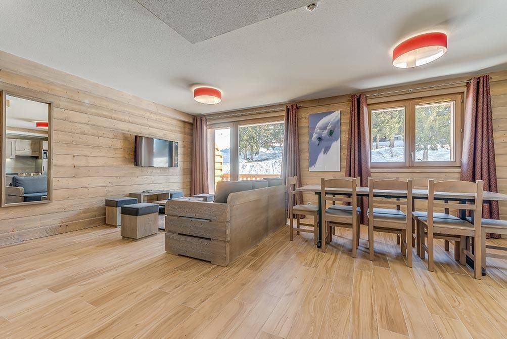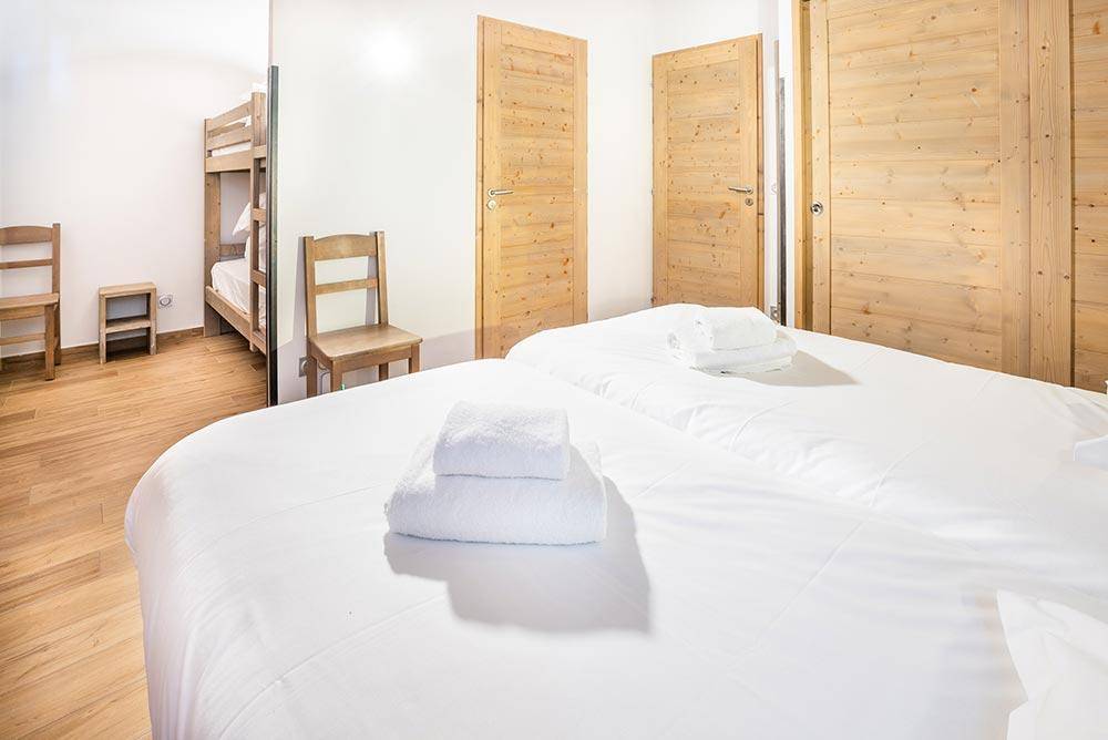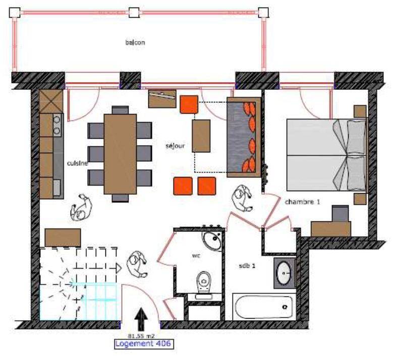 Fläche von ungefähr 82 m². 4te Etage. Blick skipisten. Niveau 0 : Wohnzimmer mit Balkon, Ausziehschlafcouch für 2 Personen (2 couchages 90x200). Schlafzimmer mit 2 zwei Einzelbetten (90x200). Kochnische mit Backofen, Geschirrspülmaschine, Mikrowellenherd, 2 Glaskeramikkochfelder, Kühlschrank. Badezimmer mit Badewanne. separates WC. Niveau 1 : Schlafzimmer mit Badewanne, 2 Stockbetten (90x200), 2 zwei Einzelbetten (90x200), . Schlafzimmer mit 2 zwei Einzelbetten (90x200). Waschräume mit Dusche. separates WC. Die oberen Betten sind nicht für Kinder unter 6 Jahren geeignet.